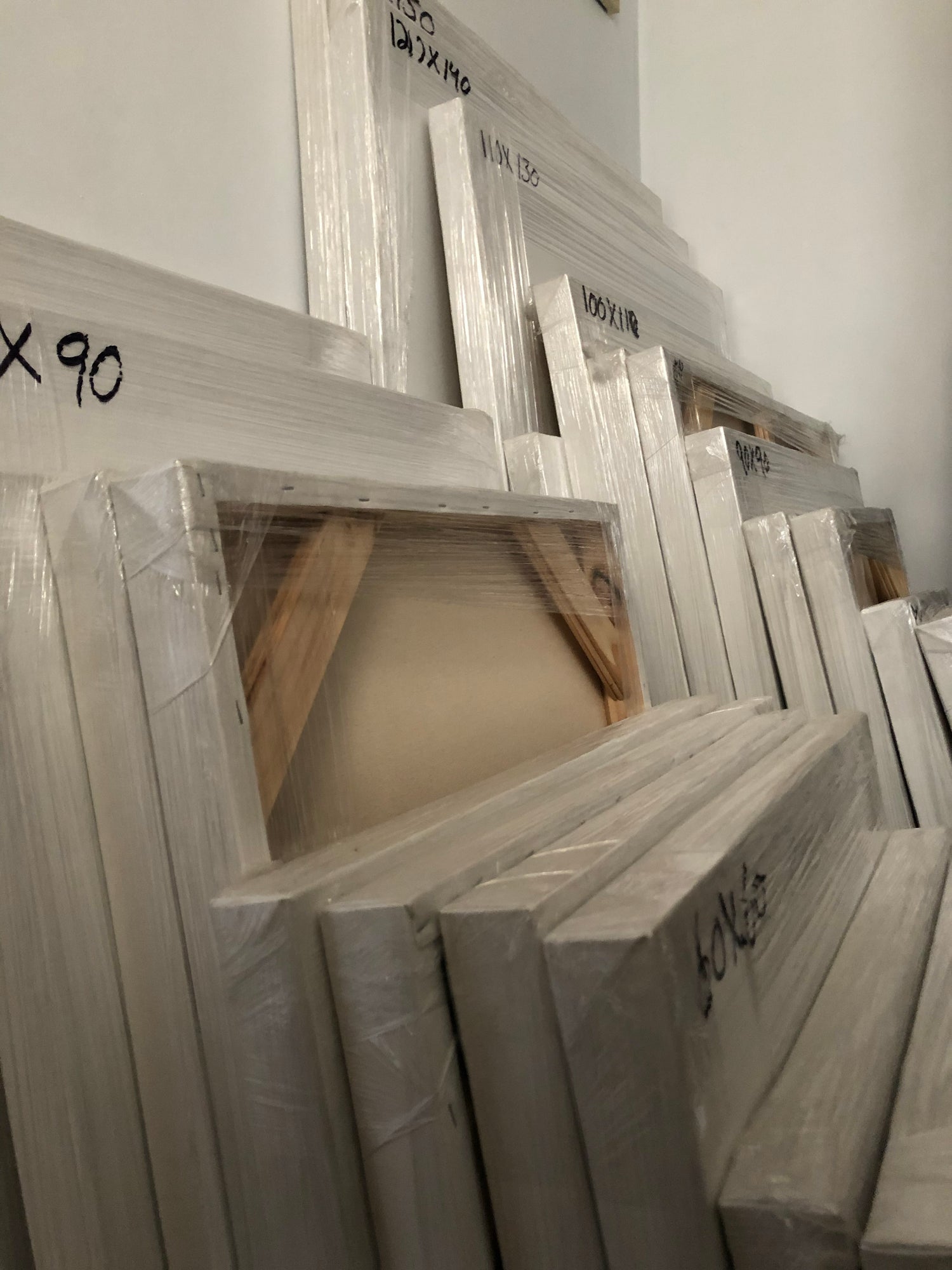 Lienzos montados con tela Fredrix libre de ácido, tensión pareja y terminados limpios. Bastidores con maderas estofadas de pino y poplar para evitar torsiones y mantener la planitud. Stock en medidas estándar, listo para envío o entrega inmediata para que empieces tu obra sin esperar.