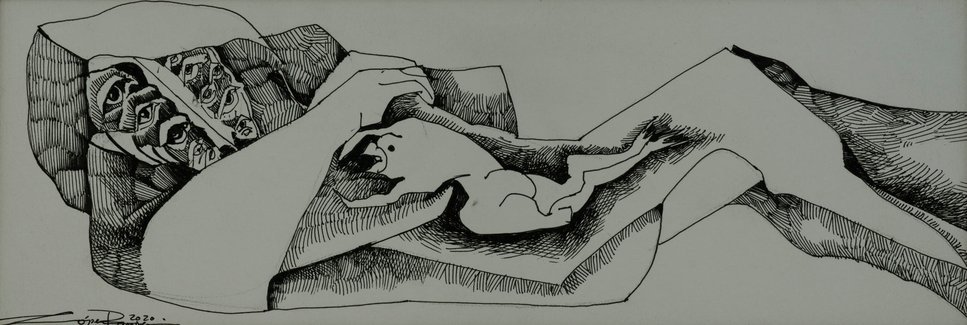 Esta obra única de Roberto Lopez Ramirez titulada "11 ojos" ha sido creada utilizando la técnica de Tinta china sobre papel. Sus dimensiones son 10x28 cm.
