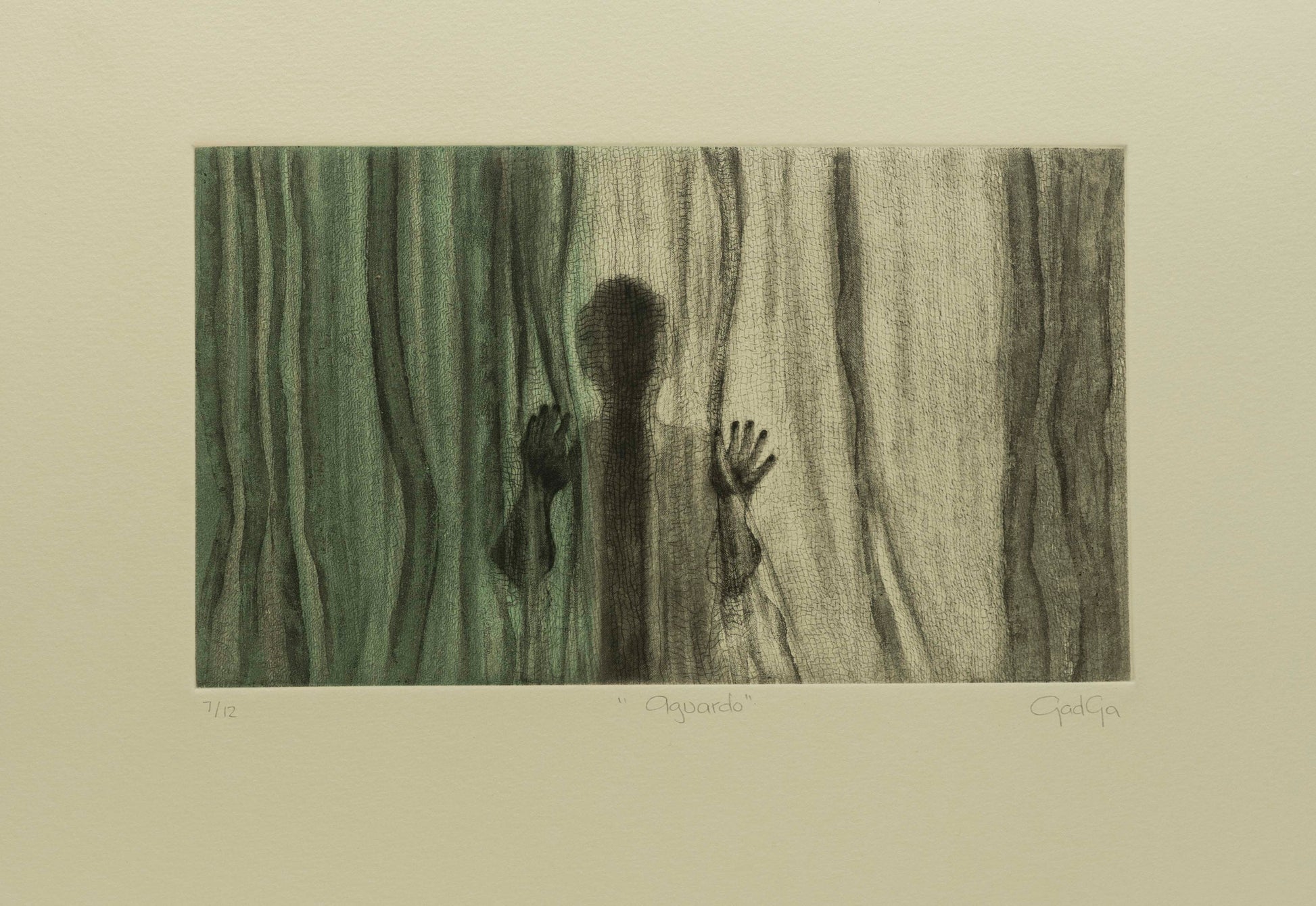 Esta obra única de Jessica Gadga titulada "Aguardo" ha sido creada utilizando la técnica de Grabado. Sus dimensiones son 13x24 cm.