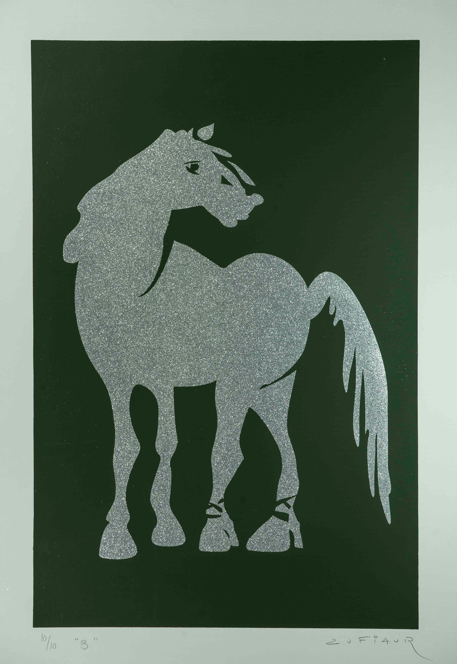 Esta obra única de Juan Zufiaur titulada "B" Caballo ha sido creada utilizando la técnica de Serigrafía. Sus dimensiones son 62x40 cm.