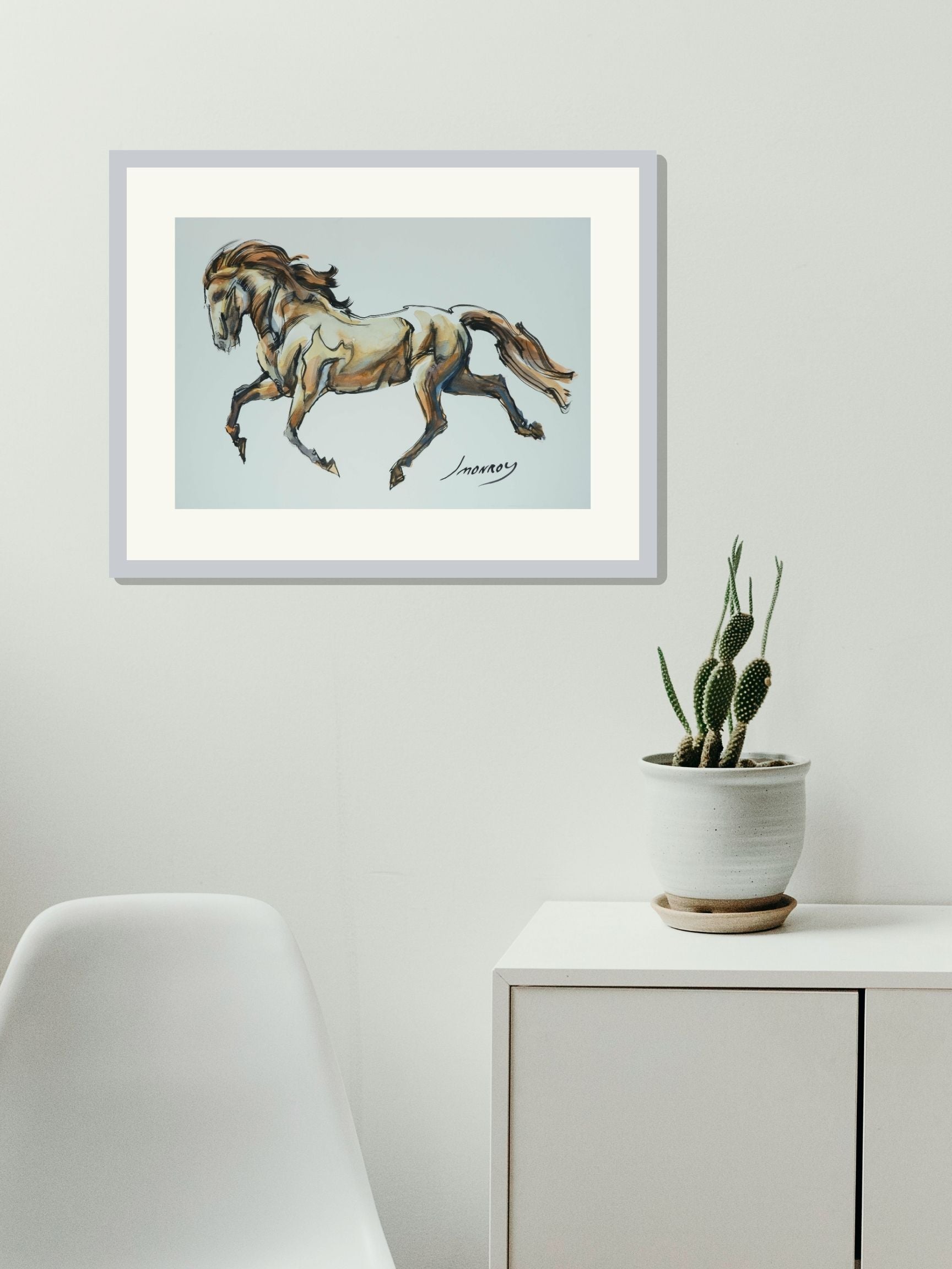 Esta obra única de Jorge Monroy titulada "Caballo IV" ha sido creada utilizando la técnica de Acuarela. Sus dimensiones son 35x50 cm.