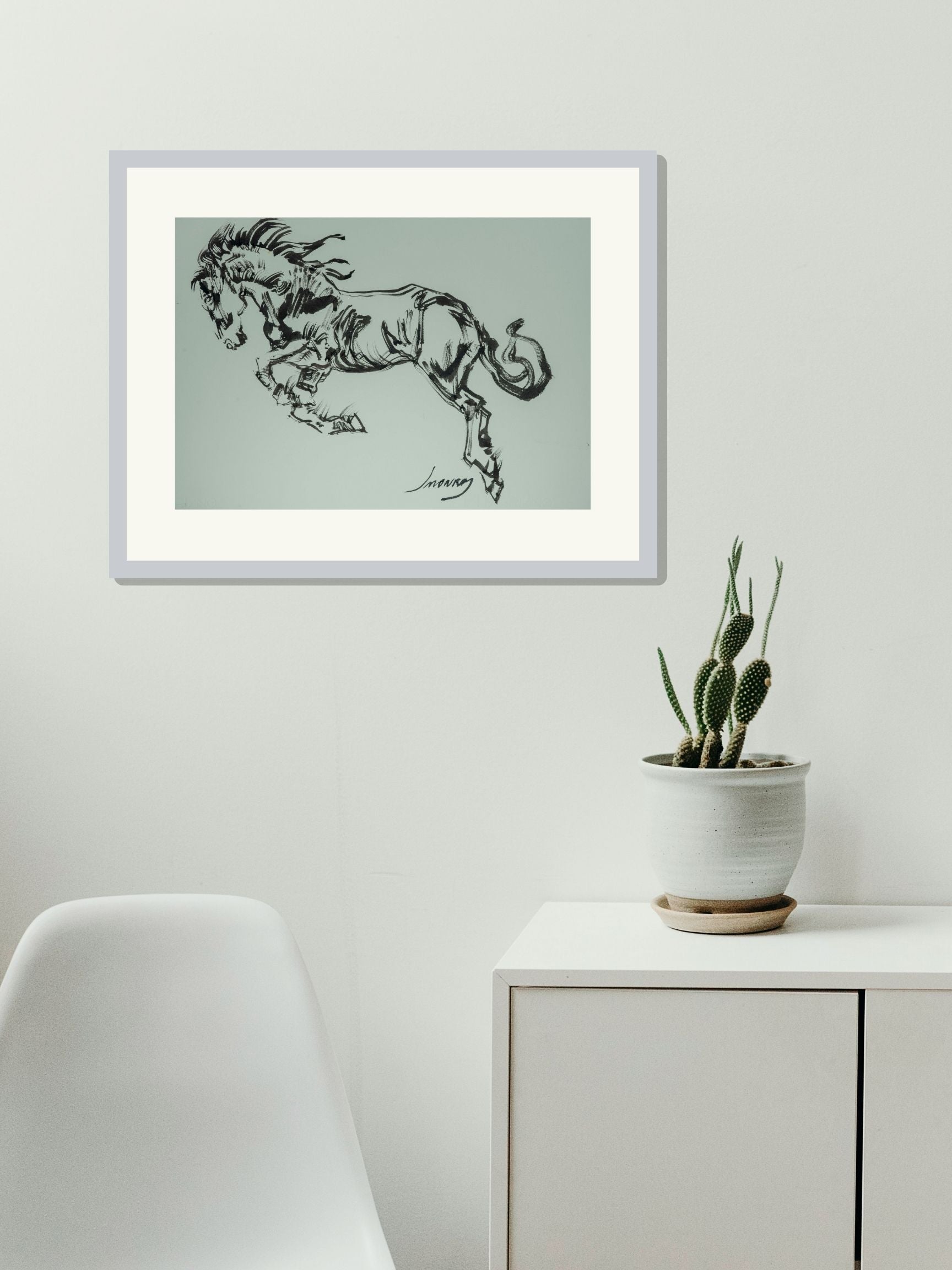 Esta obra única de Jorge Monroy titulada "Caballo VII" ha sido creada utilizando la técnica de Tinta sobre papel. Sus dimensiones son 35x50 cm.
