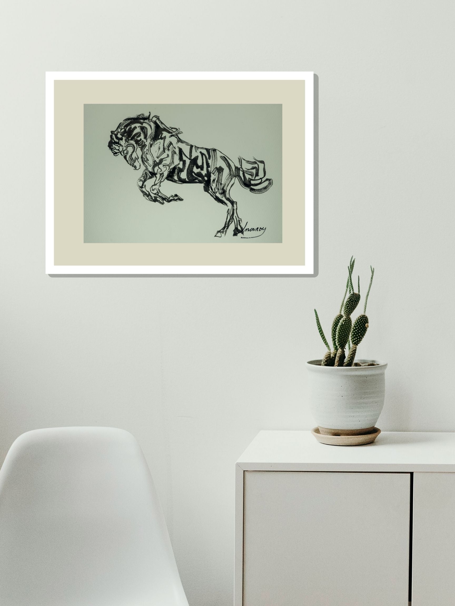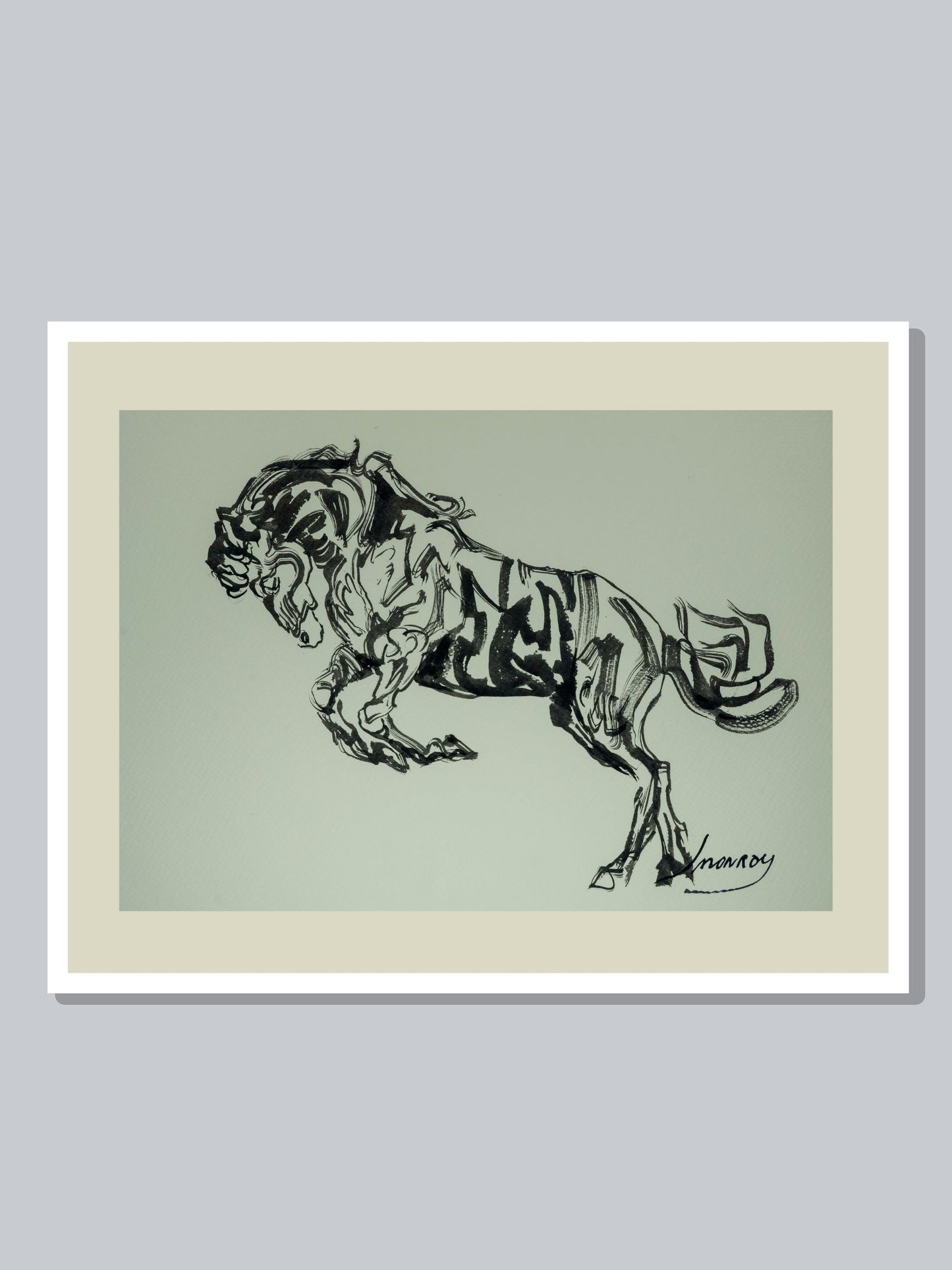 Esta obra única de Jorge Monroy titulada "Caballo X" ha sido creada utilizando la técnica de Tinta sobre papel. Sus dimensiones son 35x50 cm.