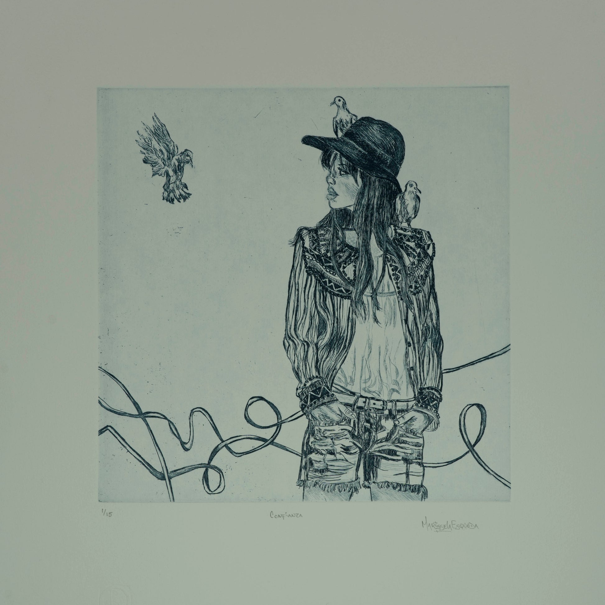 Esta obra única de Marissela Esqueda titulada "Confianza" ha sido creada utilizando la técnica de Grabado. Sus dimensiones son 25x25 cm.