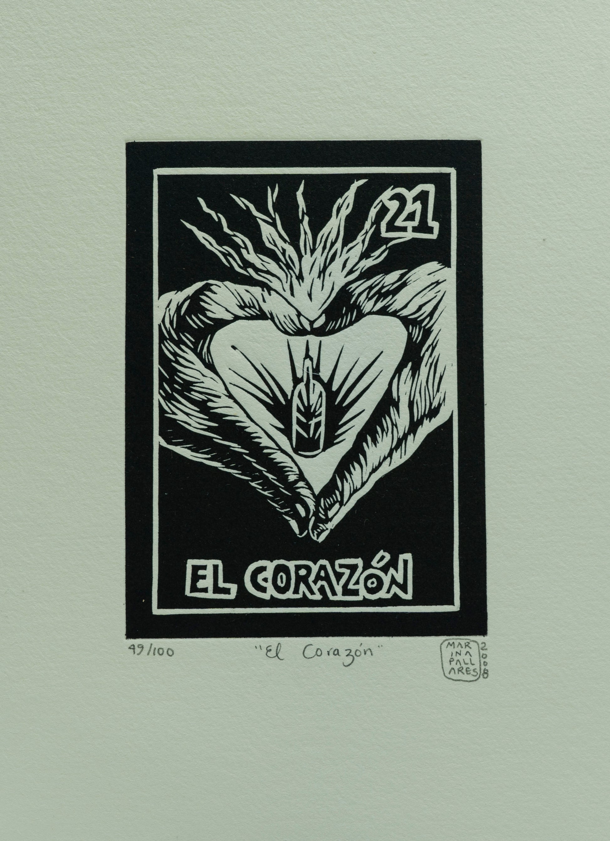 Esta obra única de Marina Pallares titulada "El corazón" ha sido creada utilizando la técnica de Grabado. Sus dimensiones son 11x8 cm.
