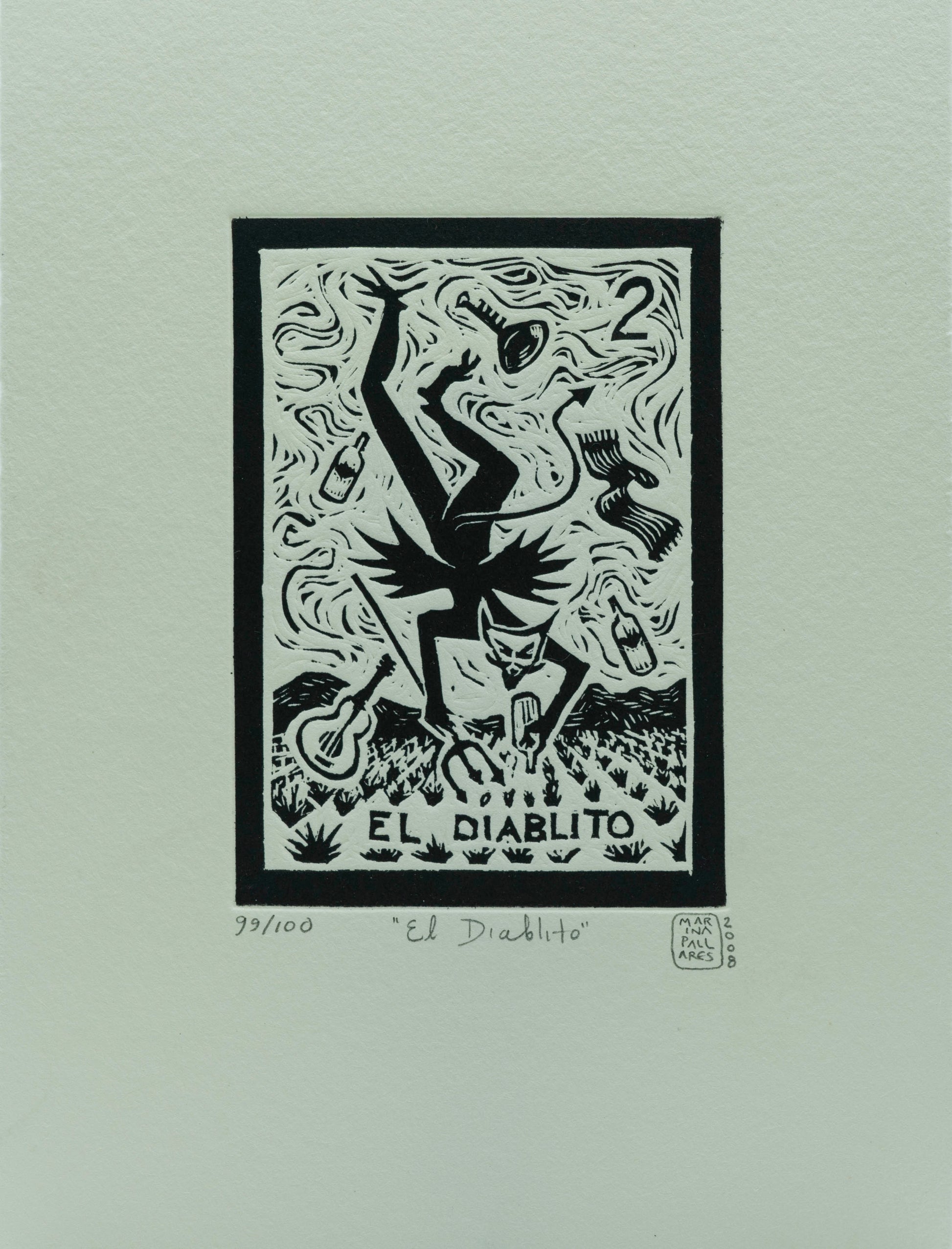 Esta obra única de Marina Pallares titulada "El diablito" ha sido creada utilizando la técnica de Grabado. Sus dimensiones son 11x8 cm.