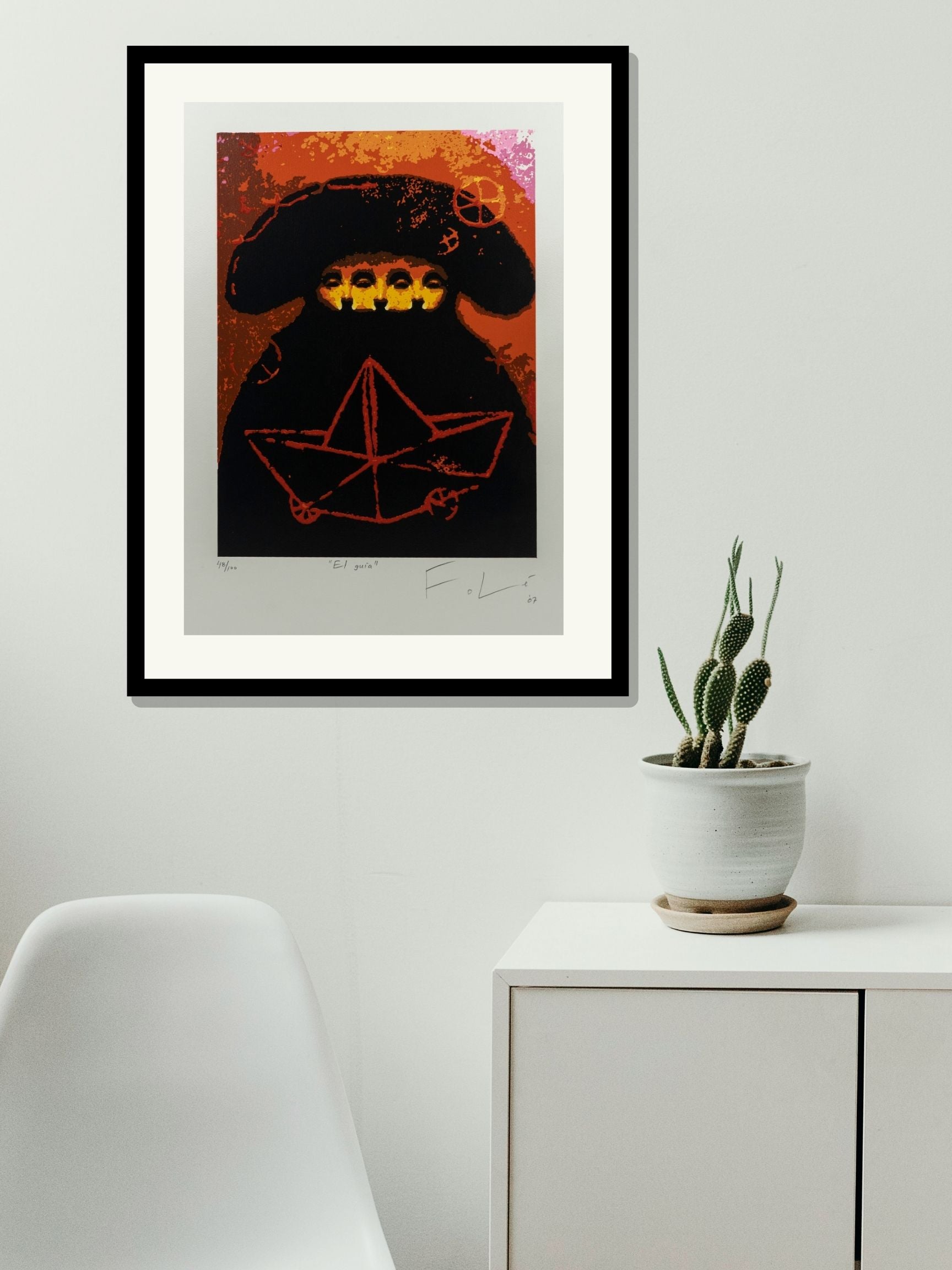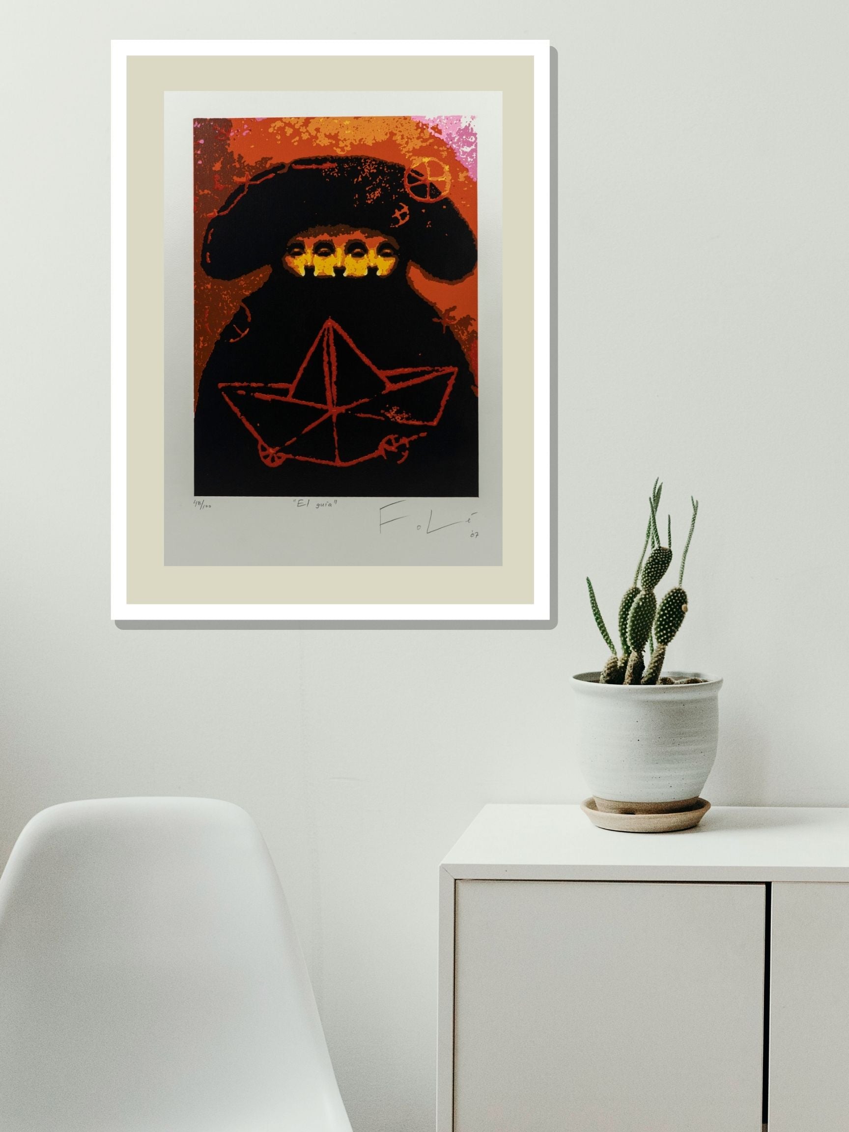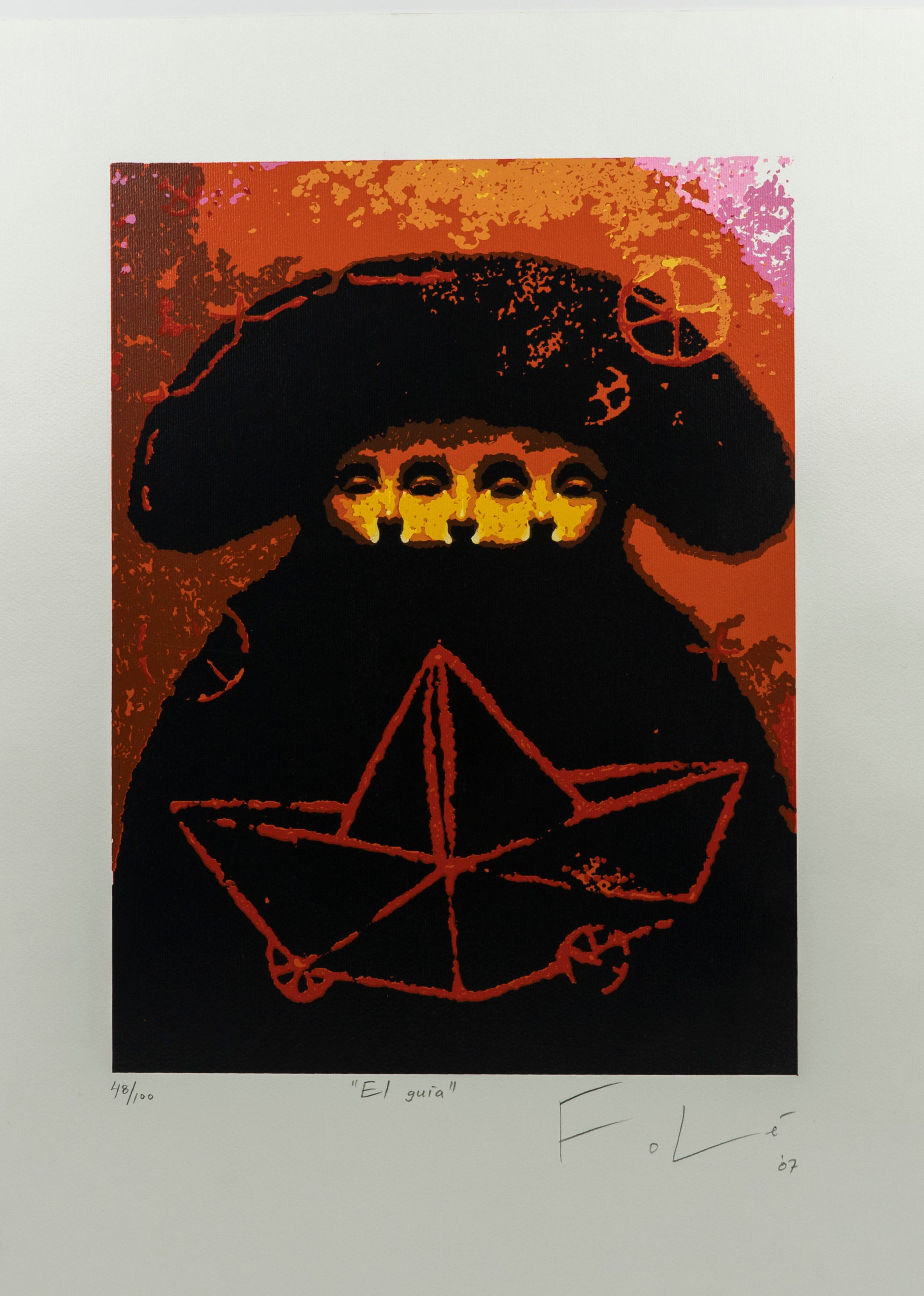 Esta obra única de Fole titulada "El guia" ha sido creada utilizando la técnica de Serigrafía. Sus dimensiones son 34x25 cm.
