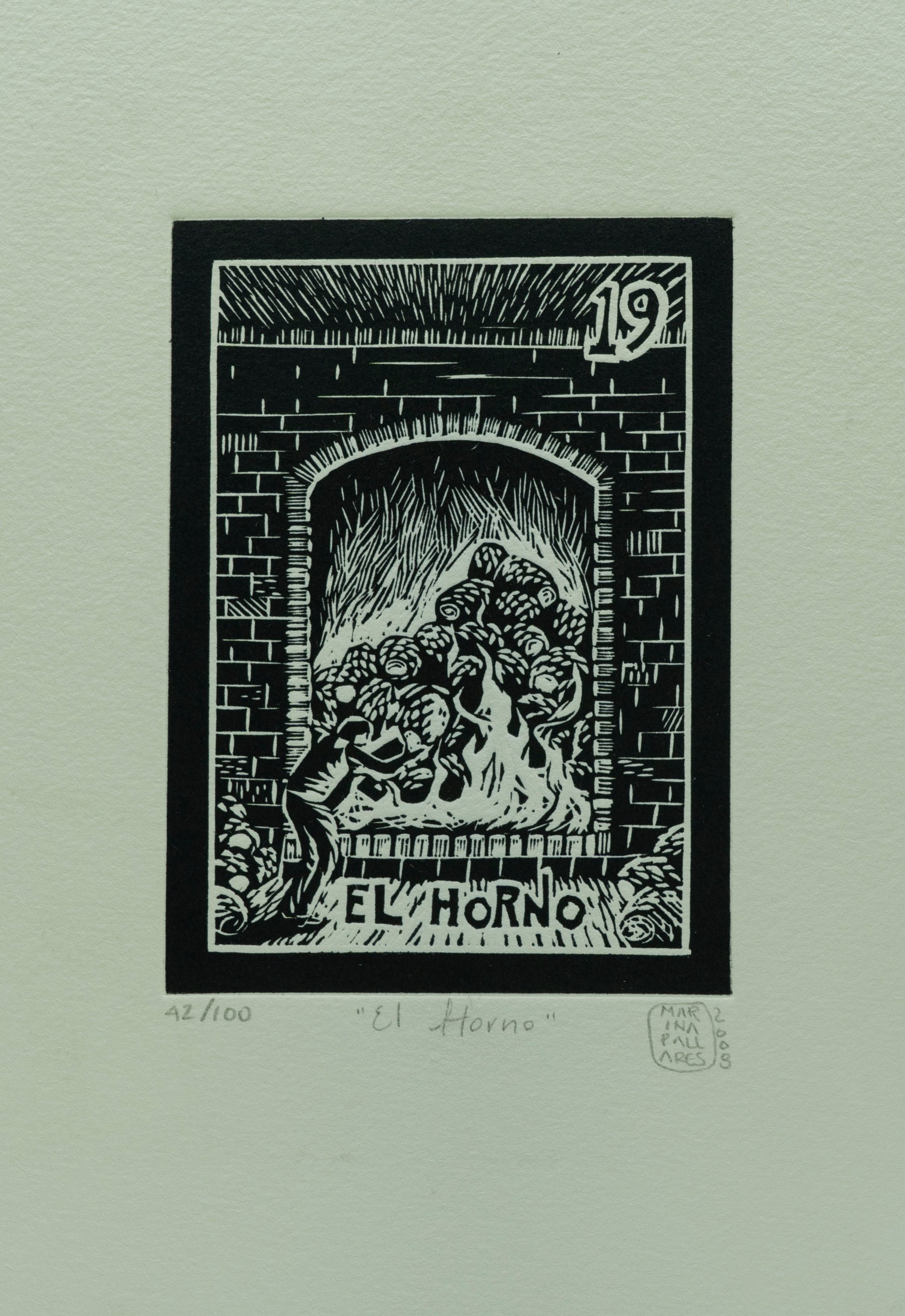 Esta obra única de Marina Pallares titulada "El horno" ha sido creada utilizando la técnica de Grabado. Sus dimensiones son 11x8 cm.