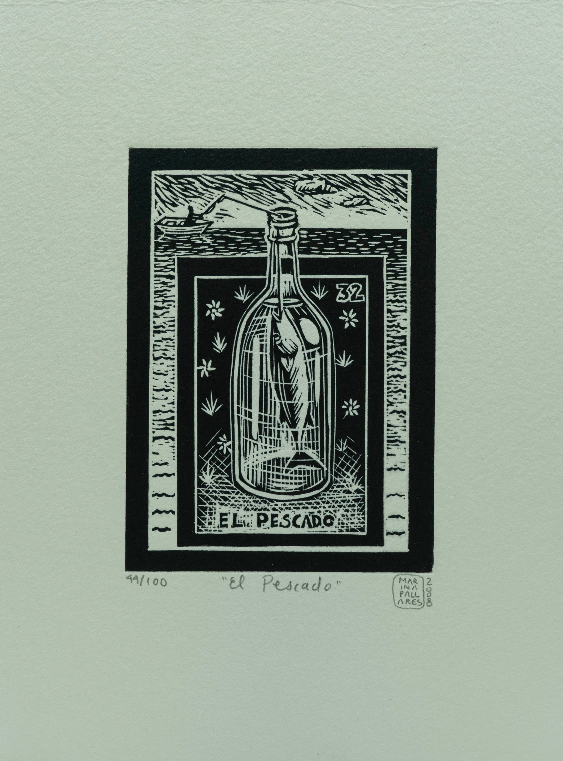 Esta obra única de Marina Pallares titulada "El pescado" ha sido creada utilizando la técnica de Grabado. Sus dimensiones son 11x8 cm.