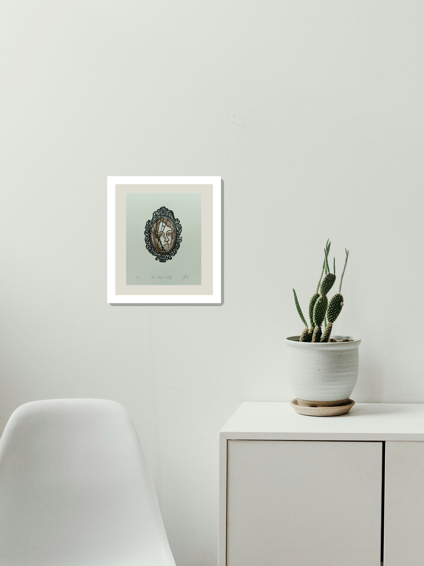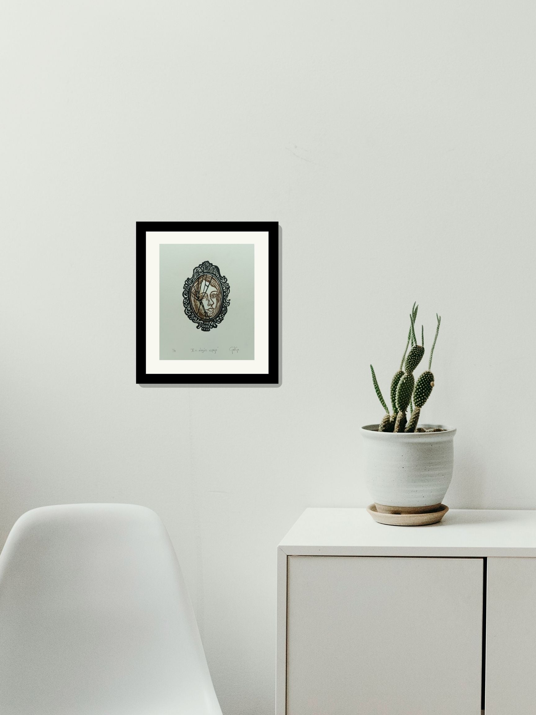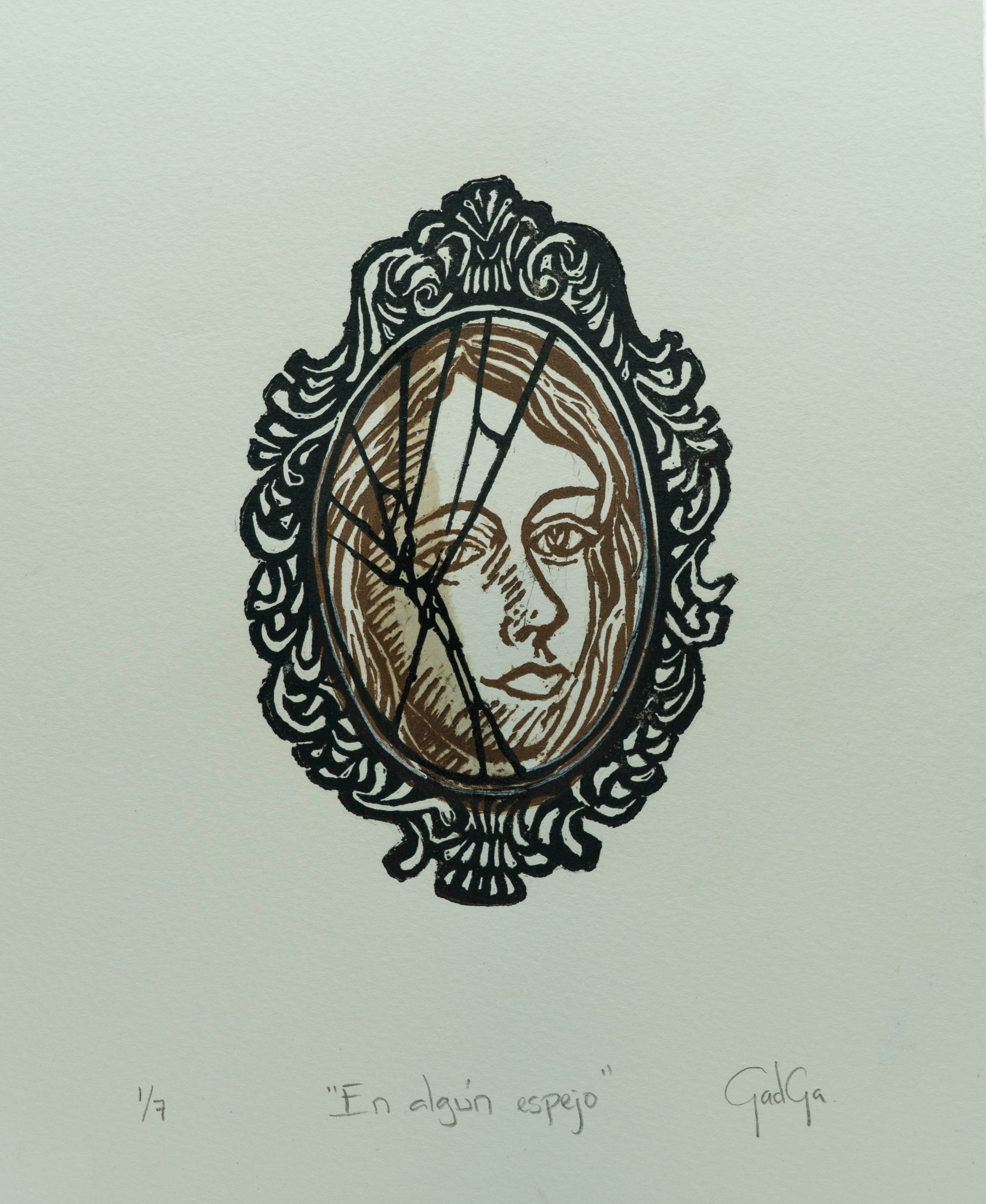 Esta obra única de Jessica Gadga titulada "En algún espejo" ha sido creada utilizando la técnica de Grabado. Sus dimensiones son 14x10 cm.