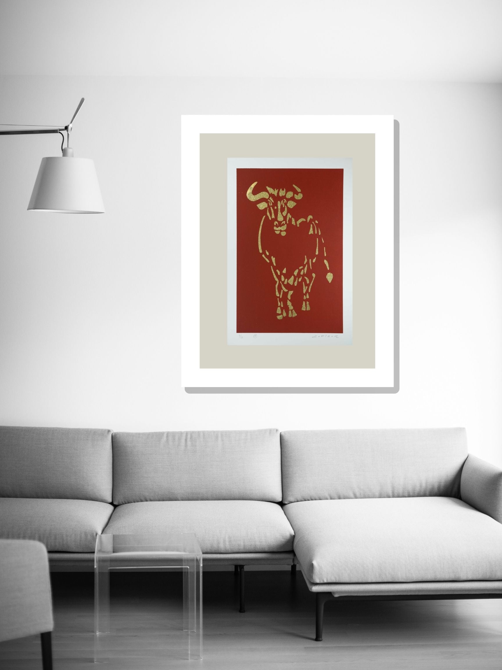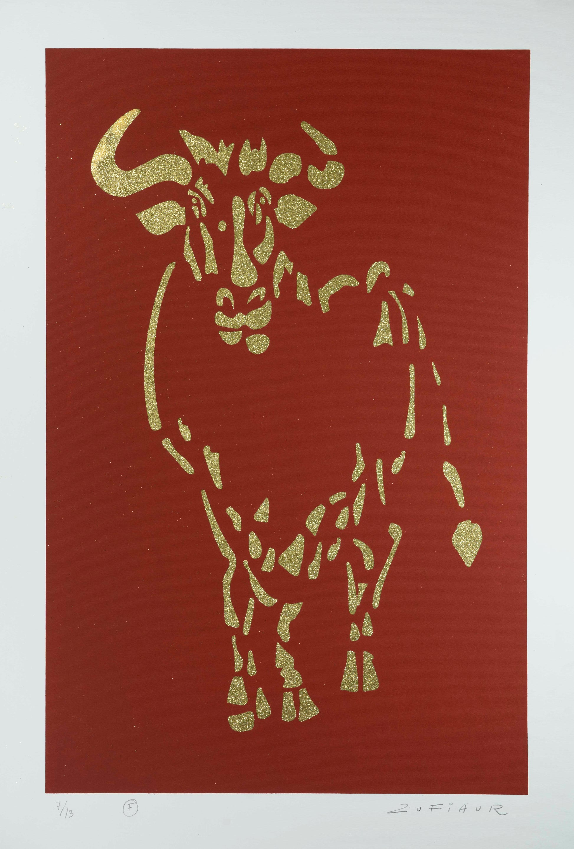 Esta obra única de Juan Zufiaur titulada "F" Toro ha sido creada utilizando la técnica de Serigrafía. Sus dimensiones son 62x40 cm.