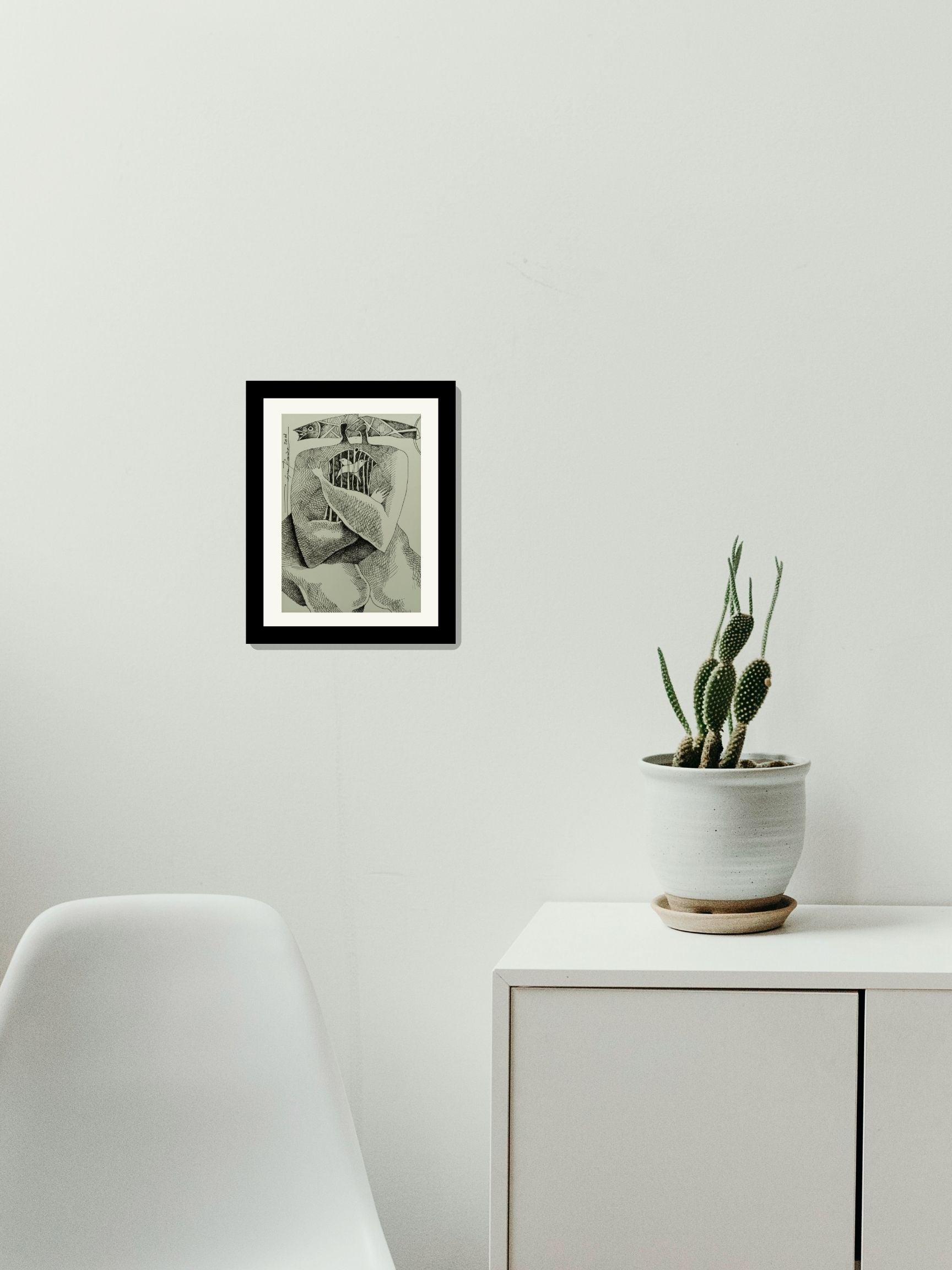 Cada enmarcado incluye materiales de conservación: marialuisa de foamboard libre de ácido, respaldo de coroplast para mayor resistencia y protección contra la humedad, y película de acrílico transparente para preservar la obra.