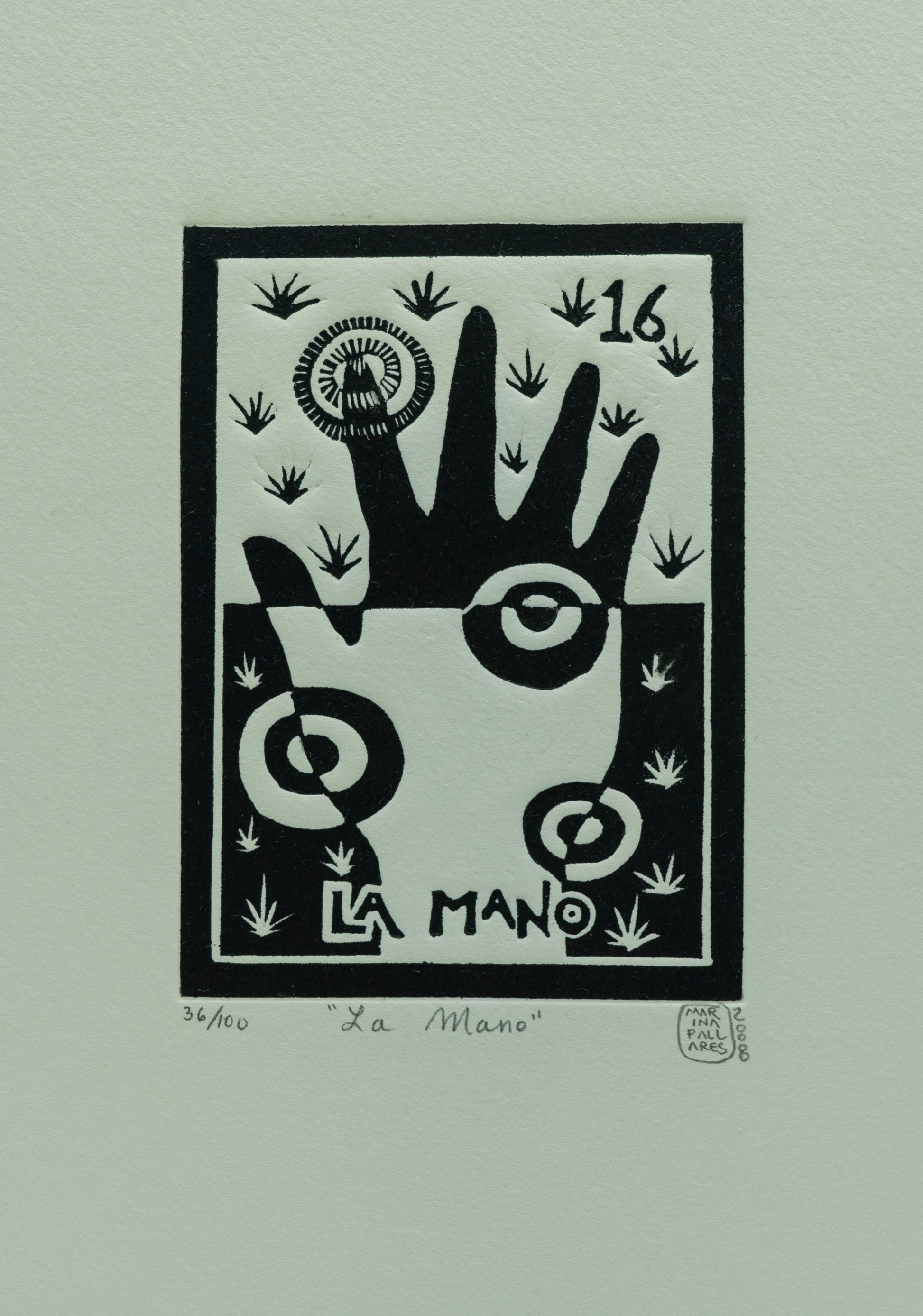 Esta obra única de Marina Pallares titulada "La mano" ha sido creada utilizando la técnica de Grabado. Sus dimensiones son 11x8 cm.