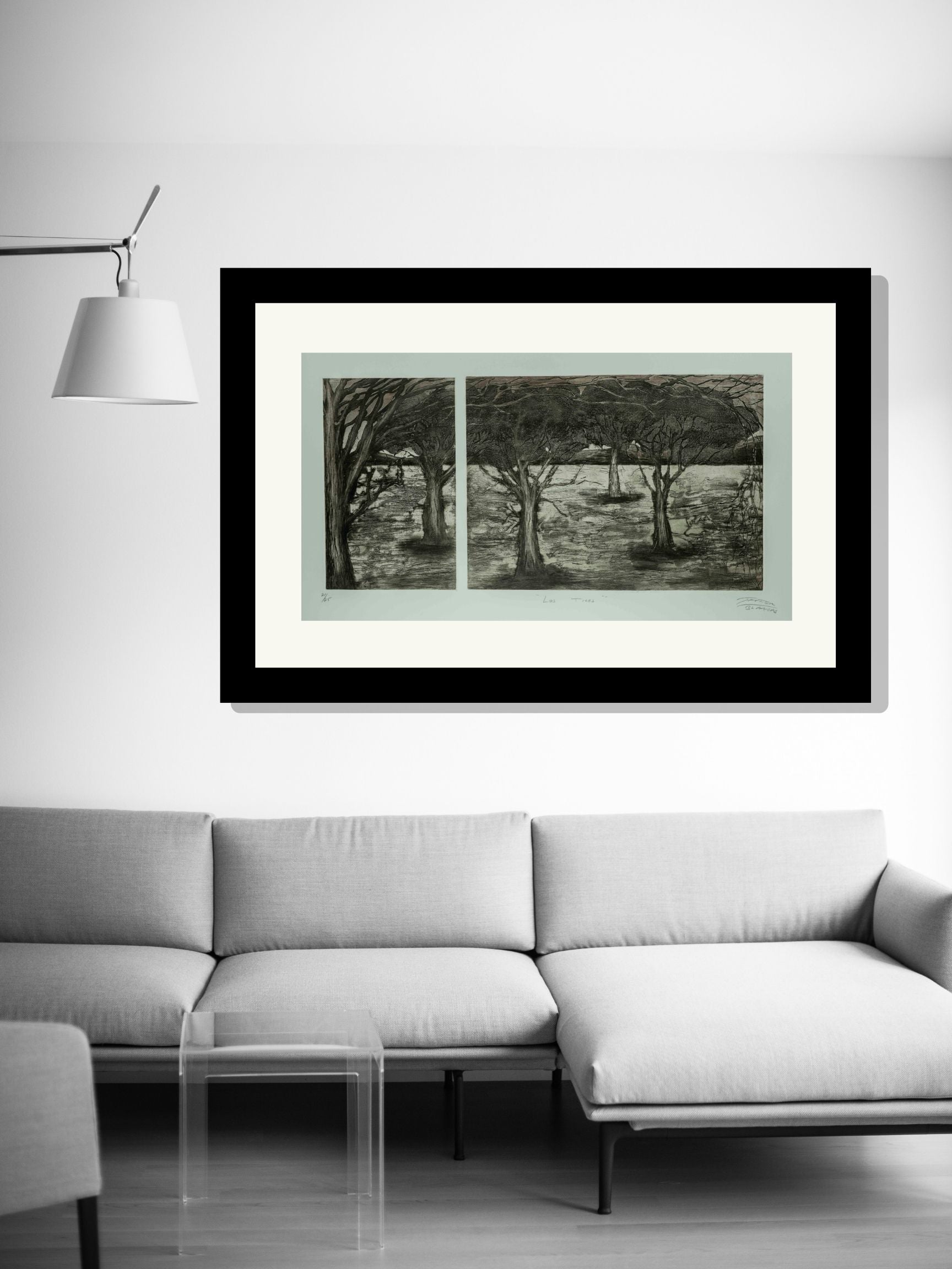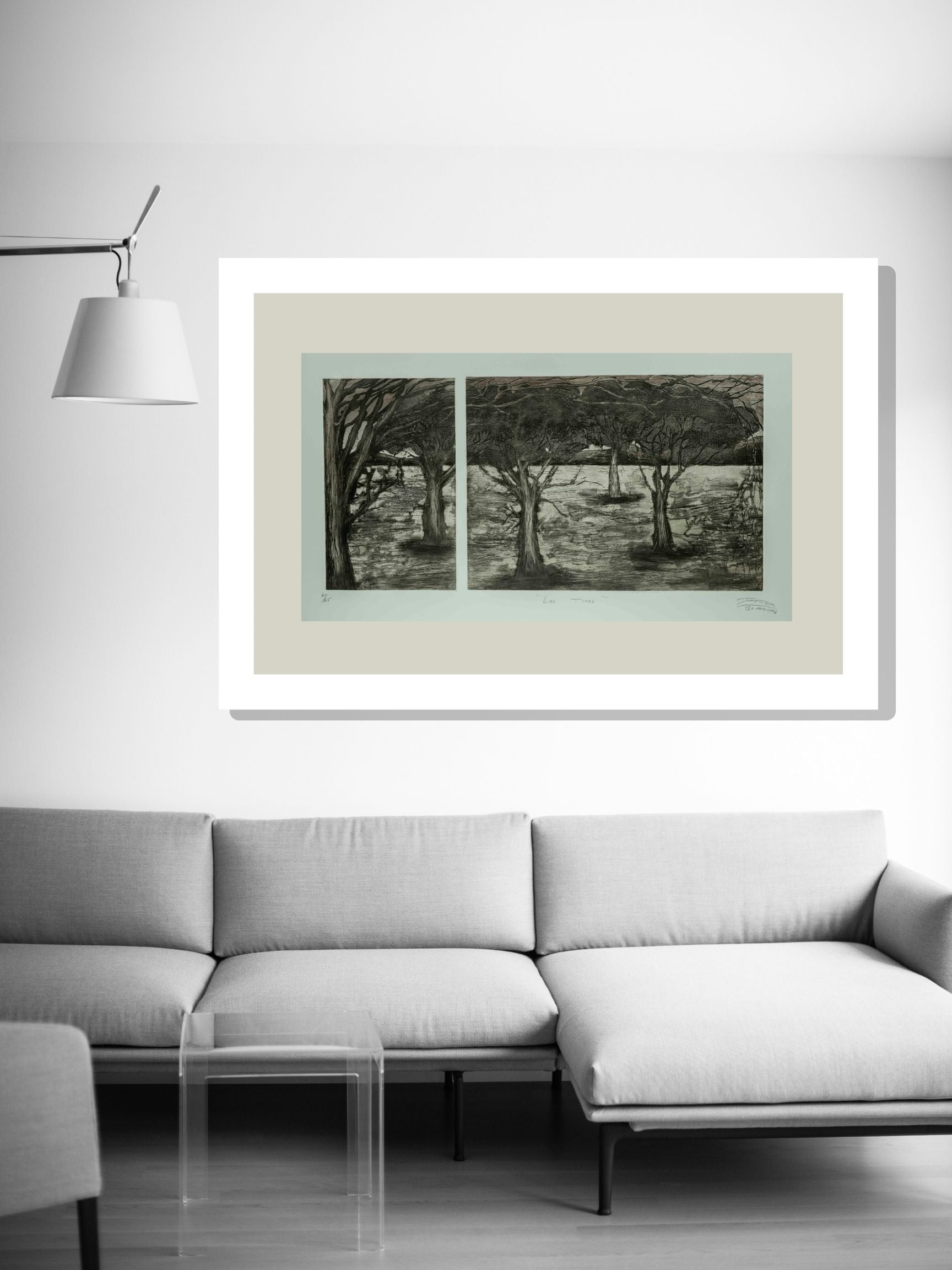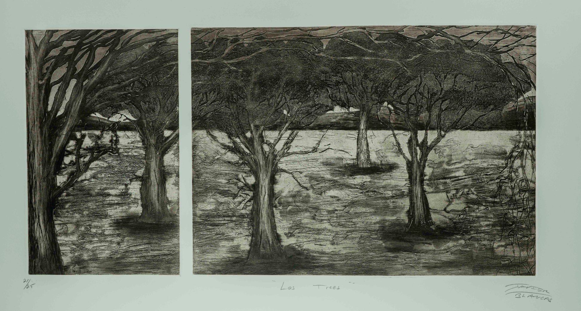 Esta obra única de Javier Blancas titulada "Los trees" ha sido creada utilizando la técnica de Grabado. Sus dimensiones son 30x61 cm.