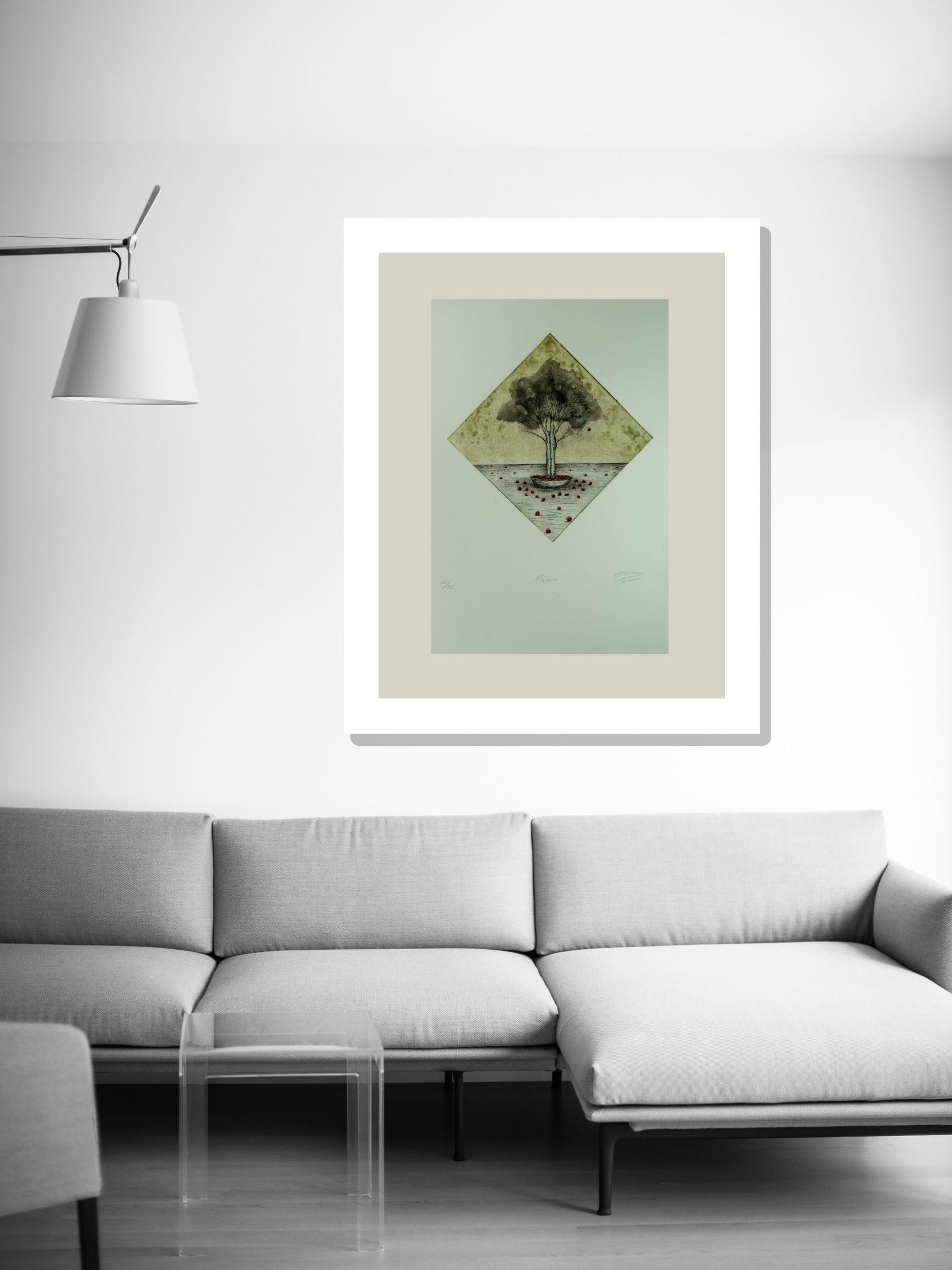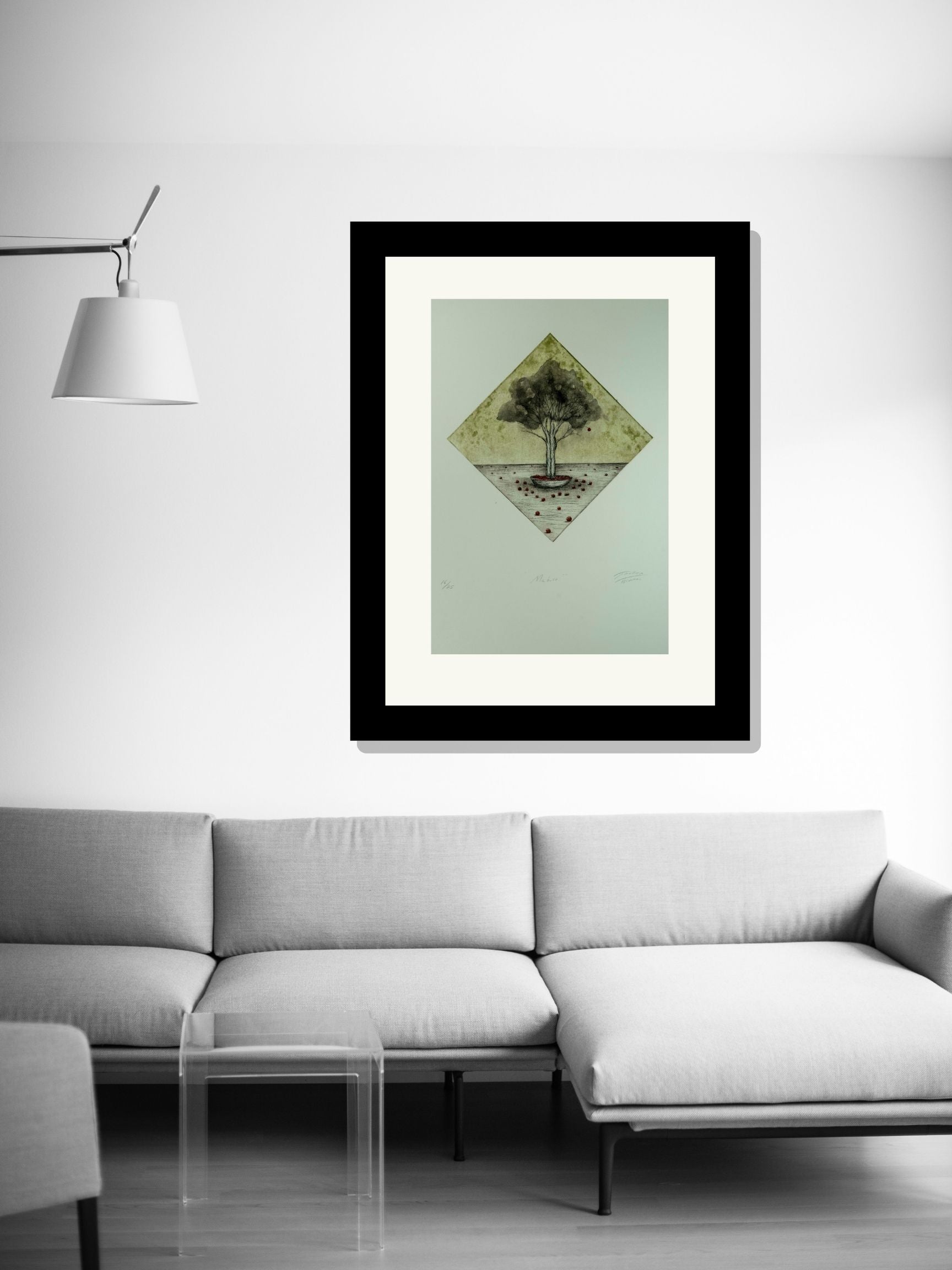 La obra enmarcada está lista para colgarse e incluye certificado de autenticidad.