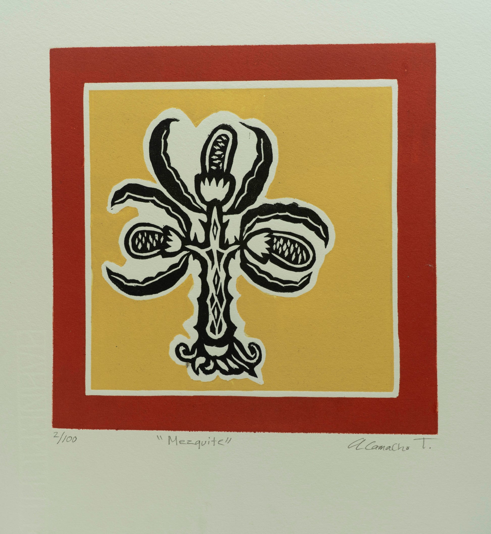 Esta obra única de Alejandro Camacho titulada "Mesquite" ha sido creada utilizando la técnica de Grabado. Sus dimensiones son 19.5x19.5 cm.