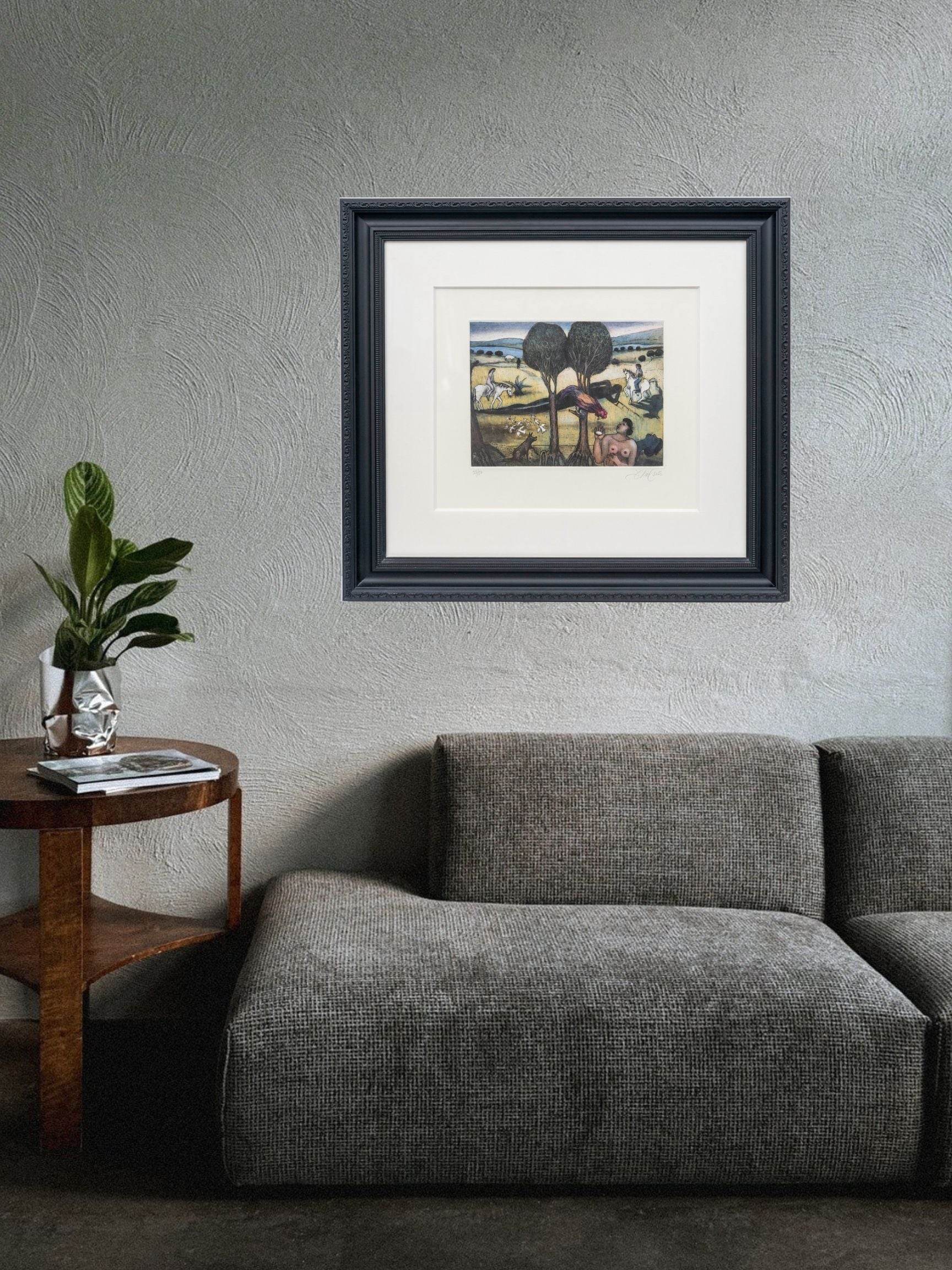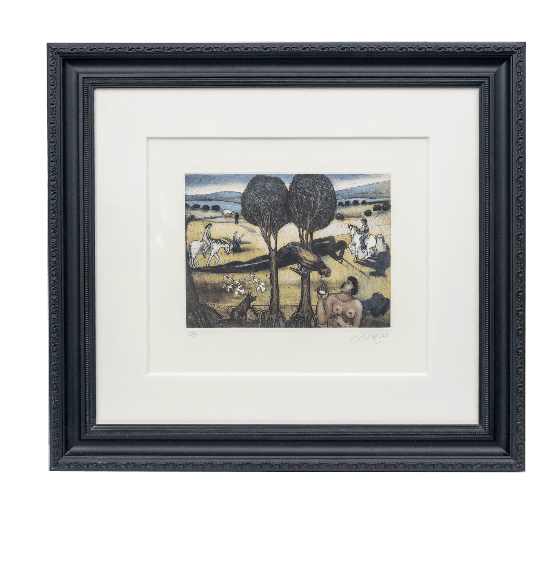 El enmarcado es de calidad premium tipo museo, realizado con materiales de conservación que aseguran la protección y preservación de la pieza a largo plazo.