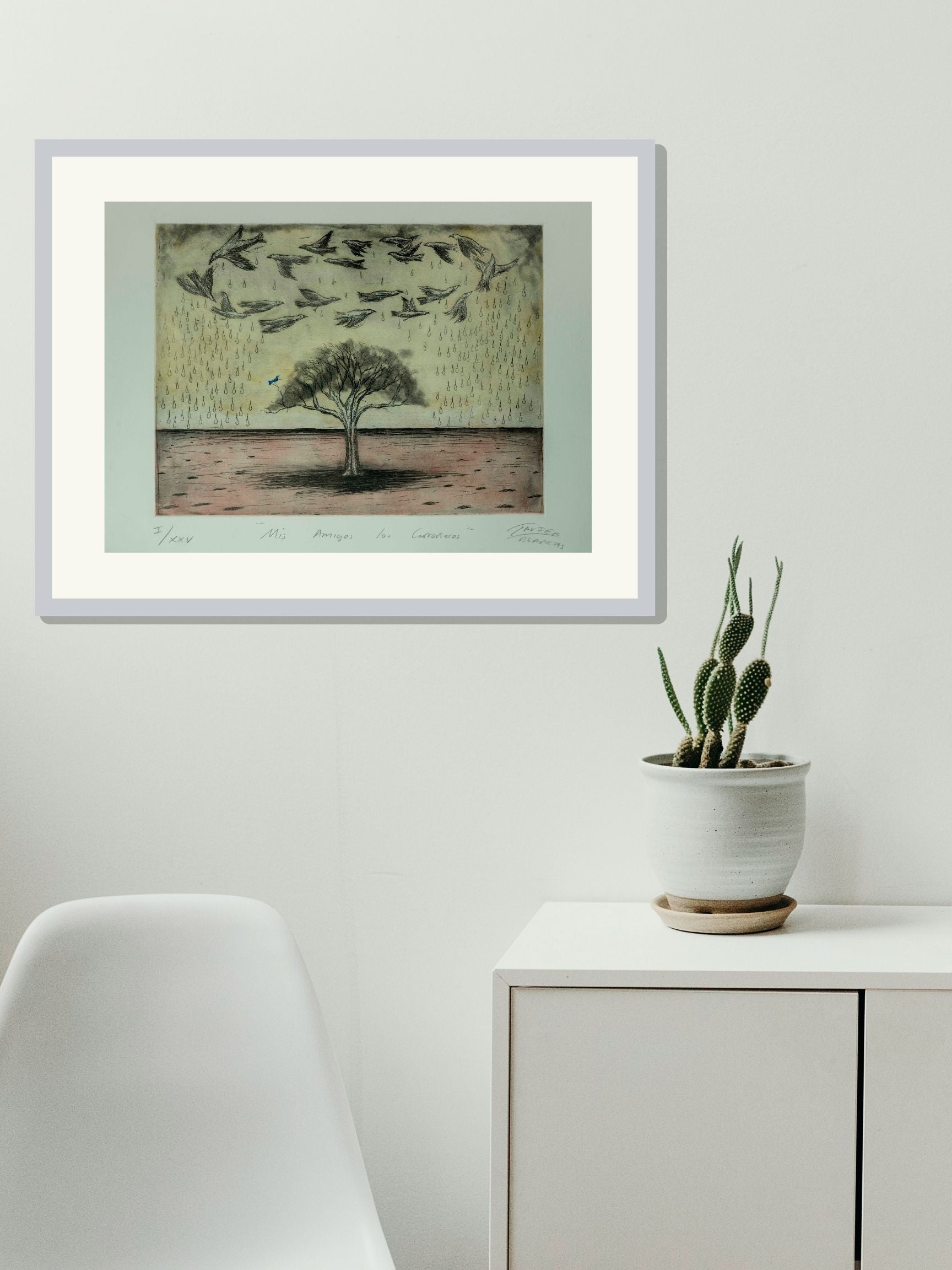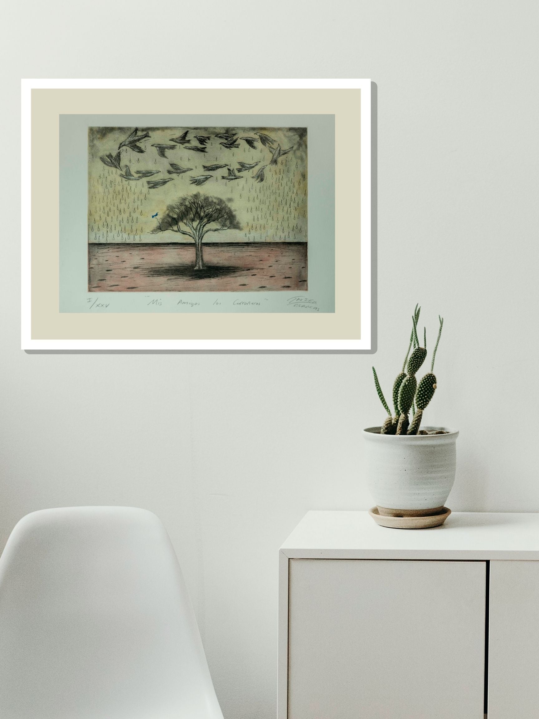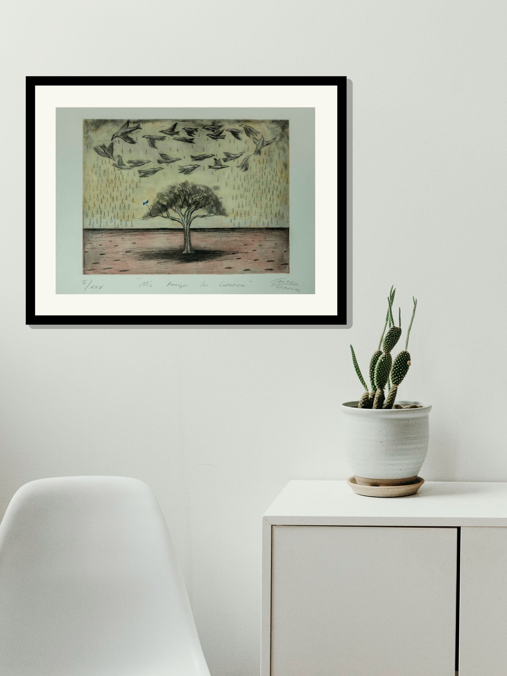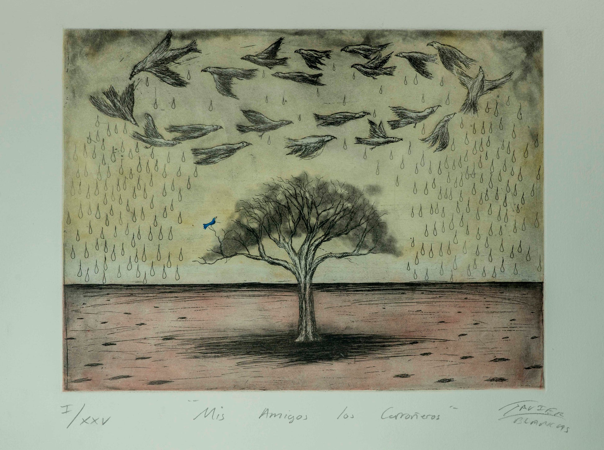 Esta obra única de Javier Blancas titulada "Mis amigos los carroñeros" ha sido creada utilizando la técnica de Grabado. Sus dimensiones son 30x40 cm.
