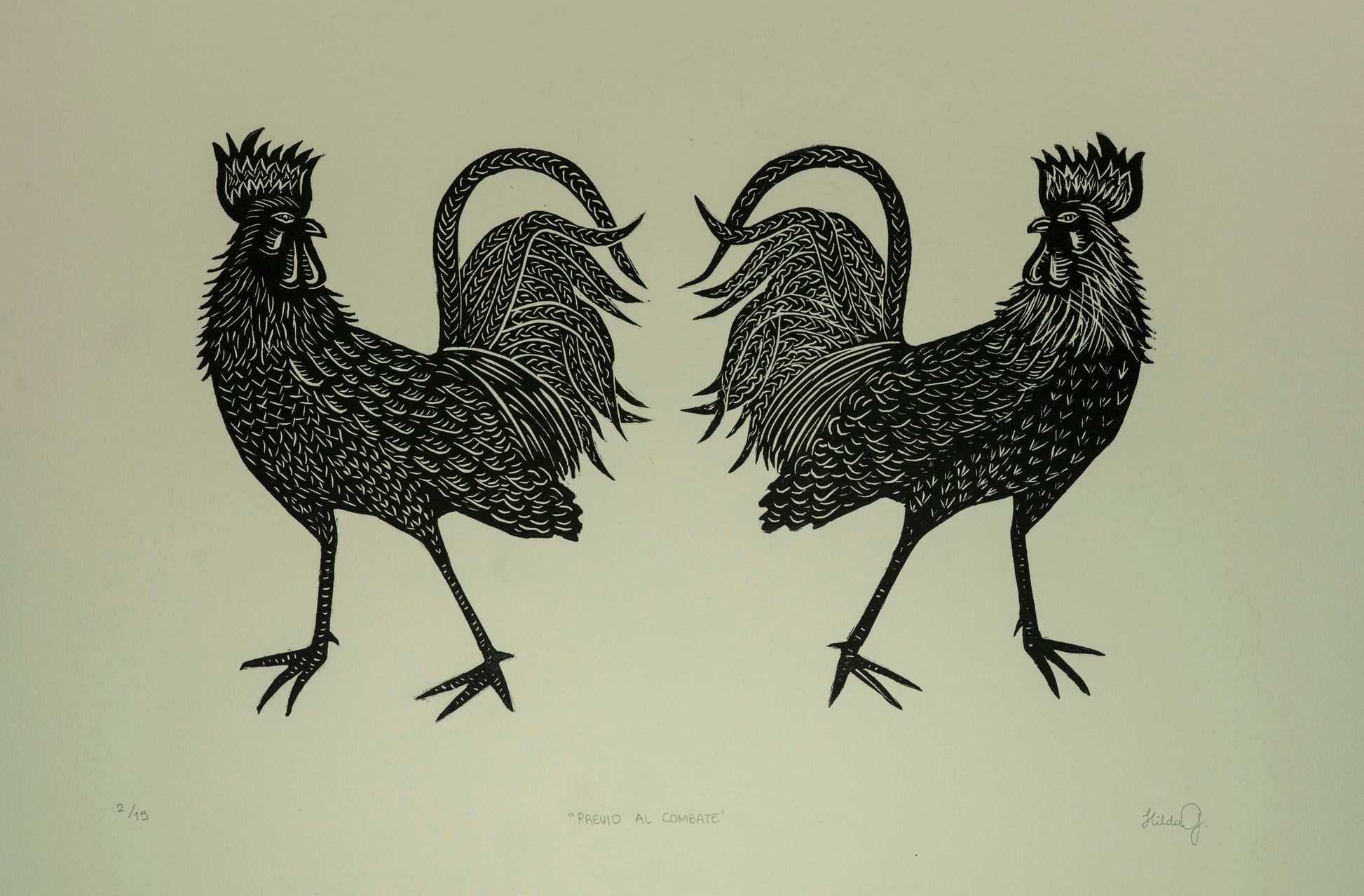 Esta obra única de Hilda Gonzalez titulada "Previo al combate" ha sido creada utilizando la técnica de Grabado. Sus dimensiones son 30x40 cm.