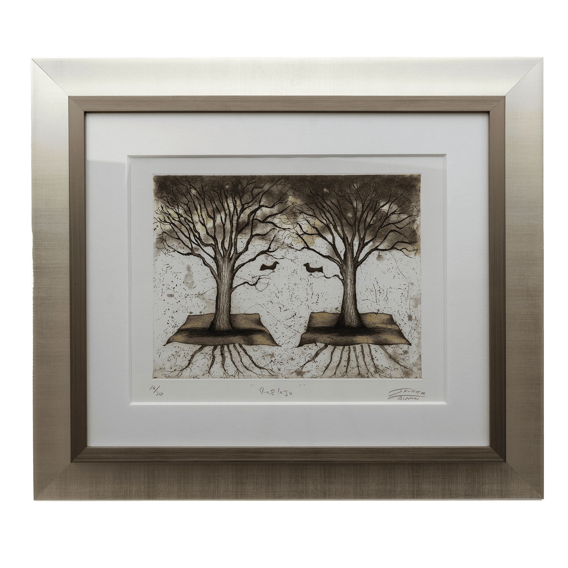 El enmarcado es de calidad premium tipo museo, realizado con materiales de conservación que aseguran la protección y preservación de la pieza a largo plazo.