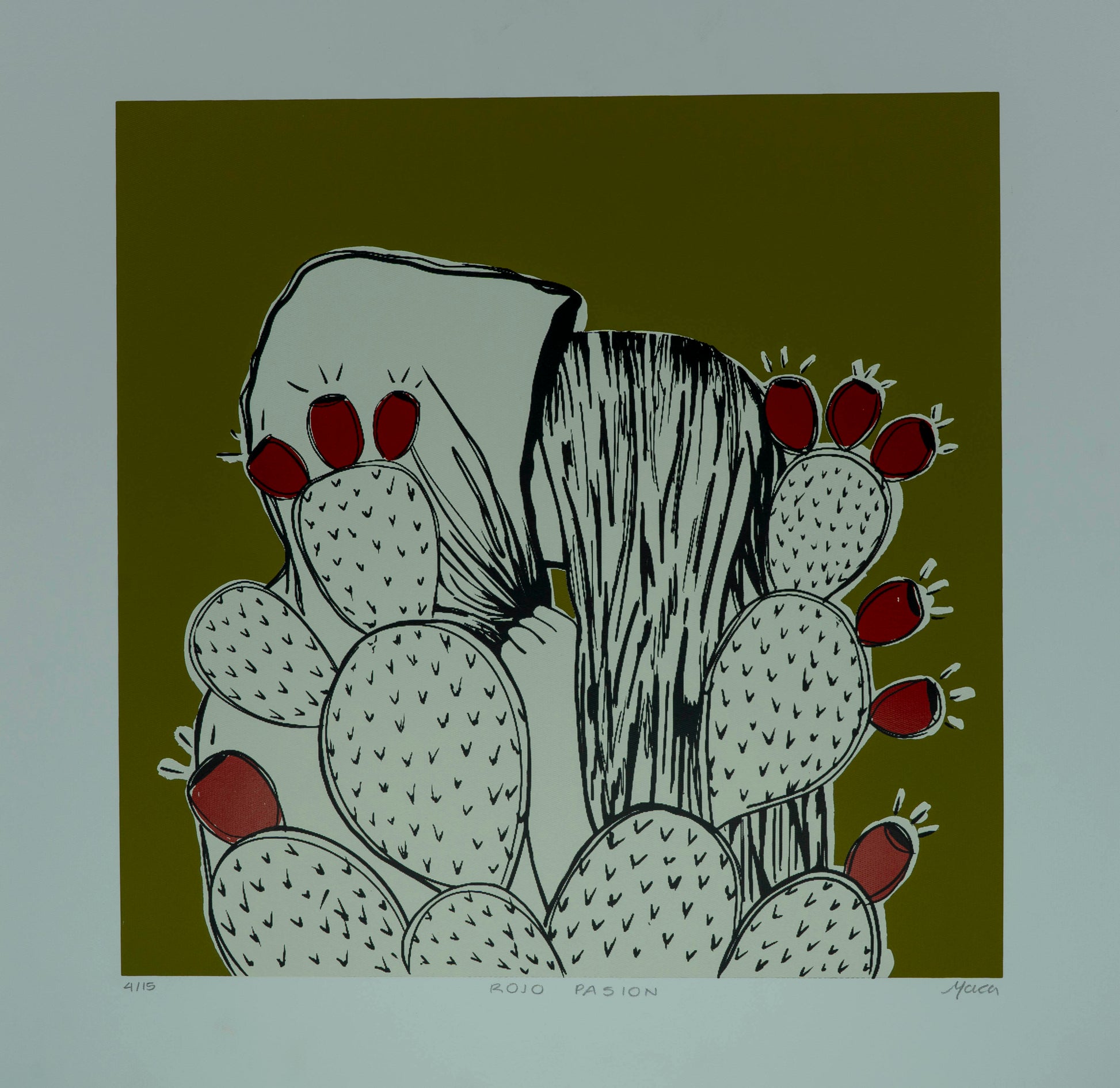 Esta obra única de Maca titulada "Rojo Pasión" ha sido creada utilizando la técnica de Serigrafía. Sus dimensiones son 30x30 cm.