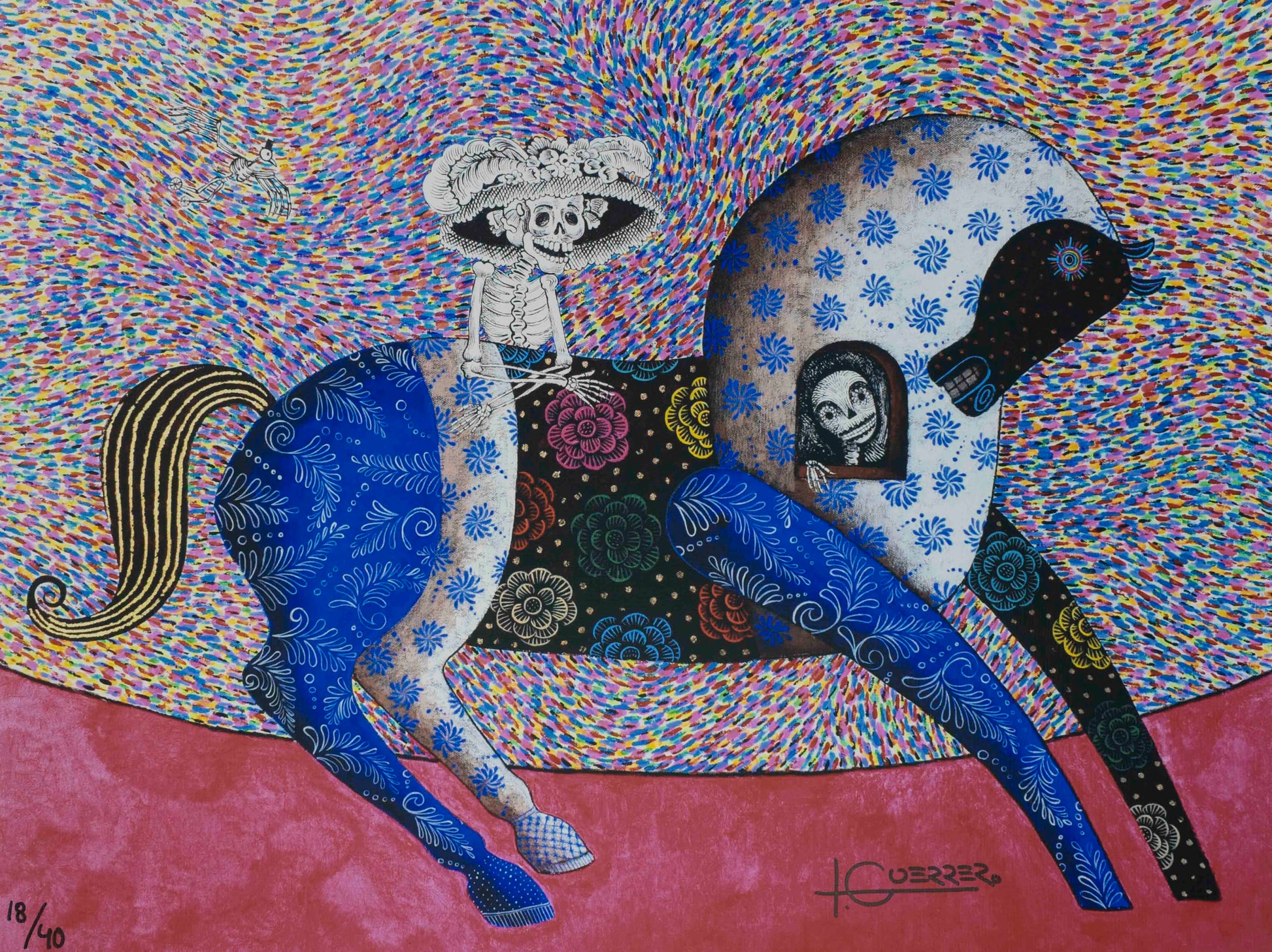 Ignacio Guerrero es un artista plástico autodidacta cuya obra surrealista explora la libertad creativa a través de colores vibrantes y personajes fantásticos en constante transformación.