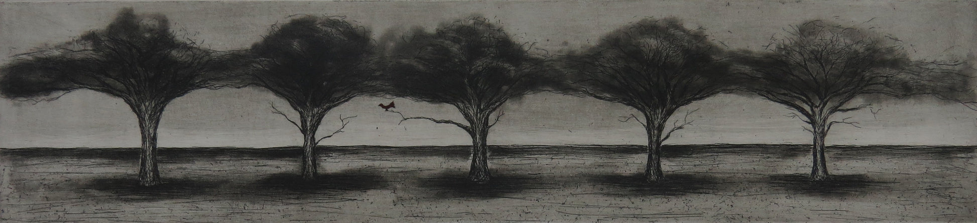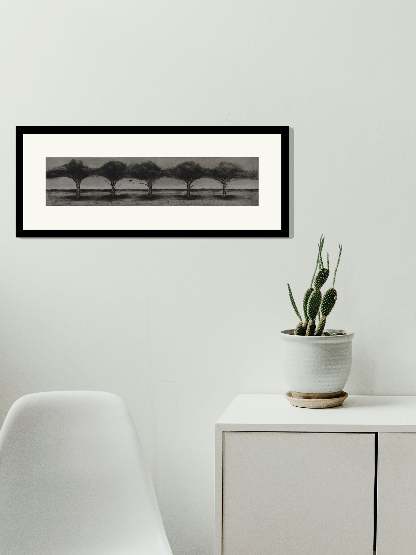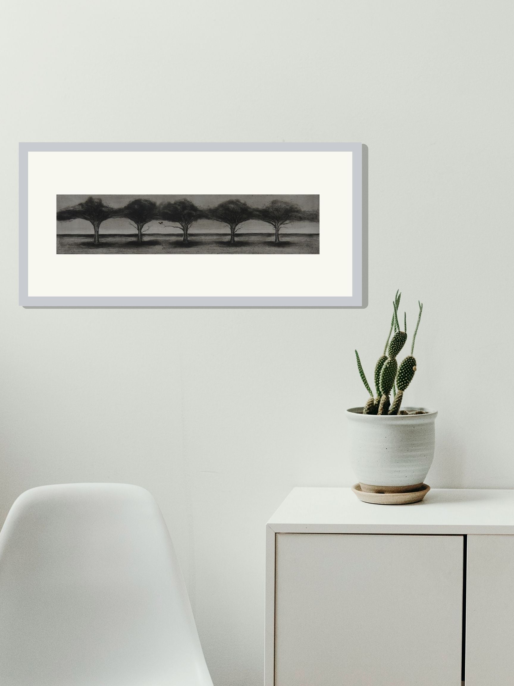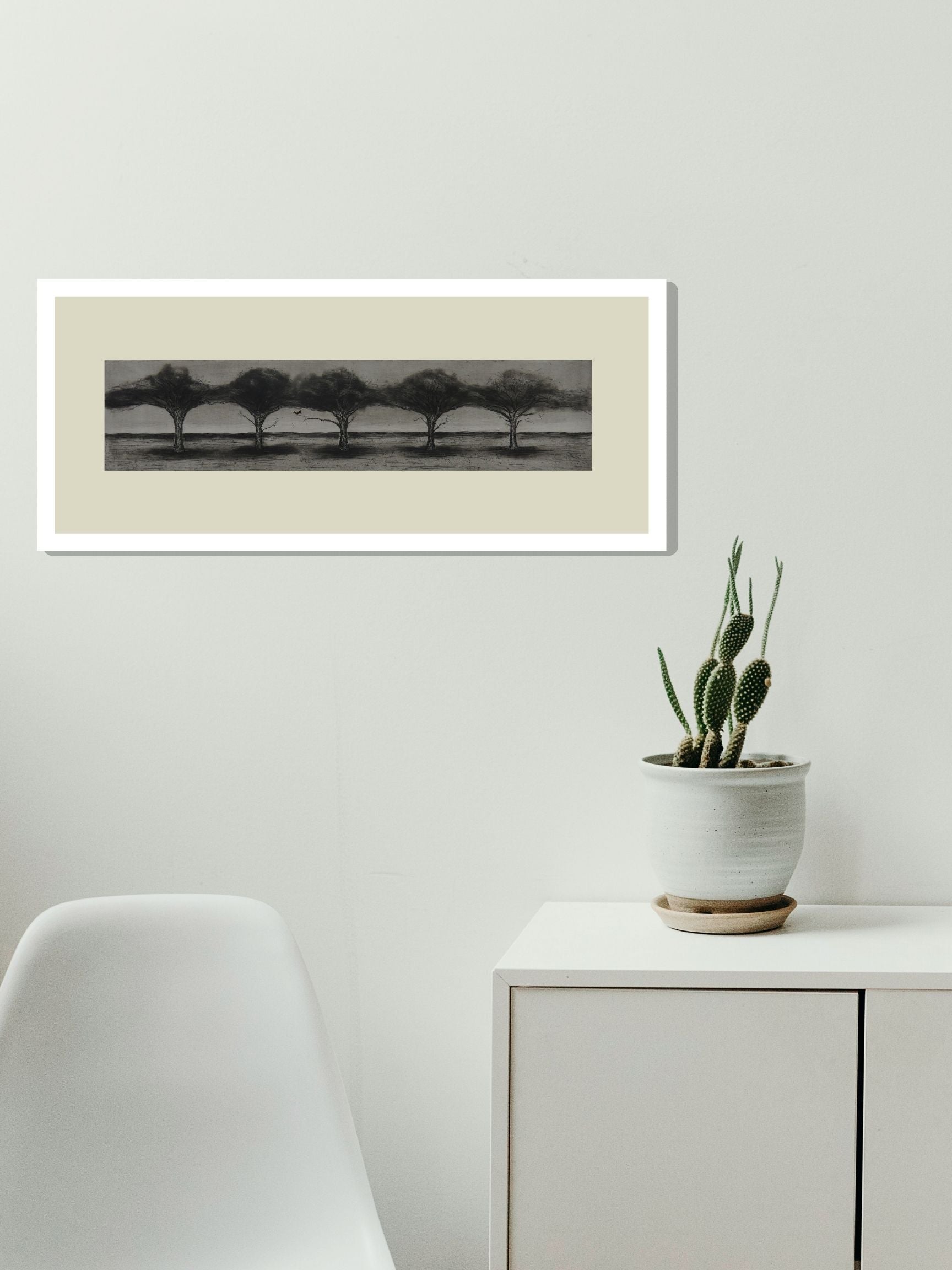 Esta obra única de Javier Blancas titulada "Sin darme cuenta se paró" ha sido creada utilizando la técnica de Grabado. Sus dimensiones son 12x54 cm.