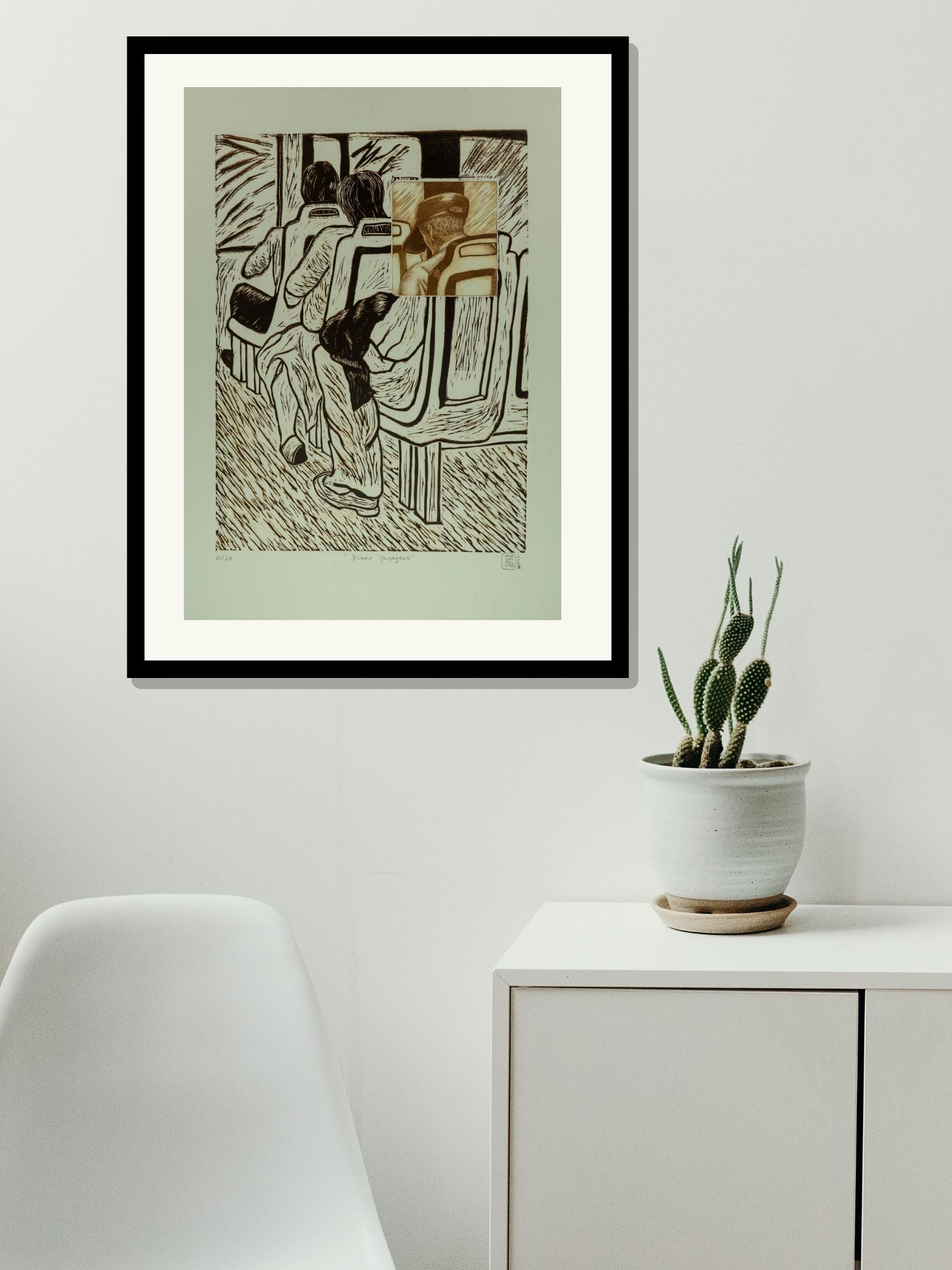 Esta obra única de Marina Pallares titulada "Sueño pasajero" ha sido creada utilizando la técnica de Grabado. Sus dimensiones son 39x29.5 cm.