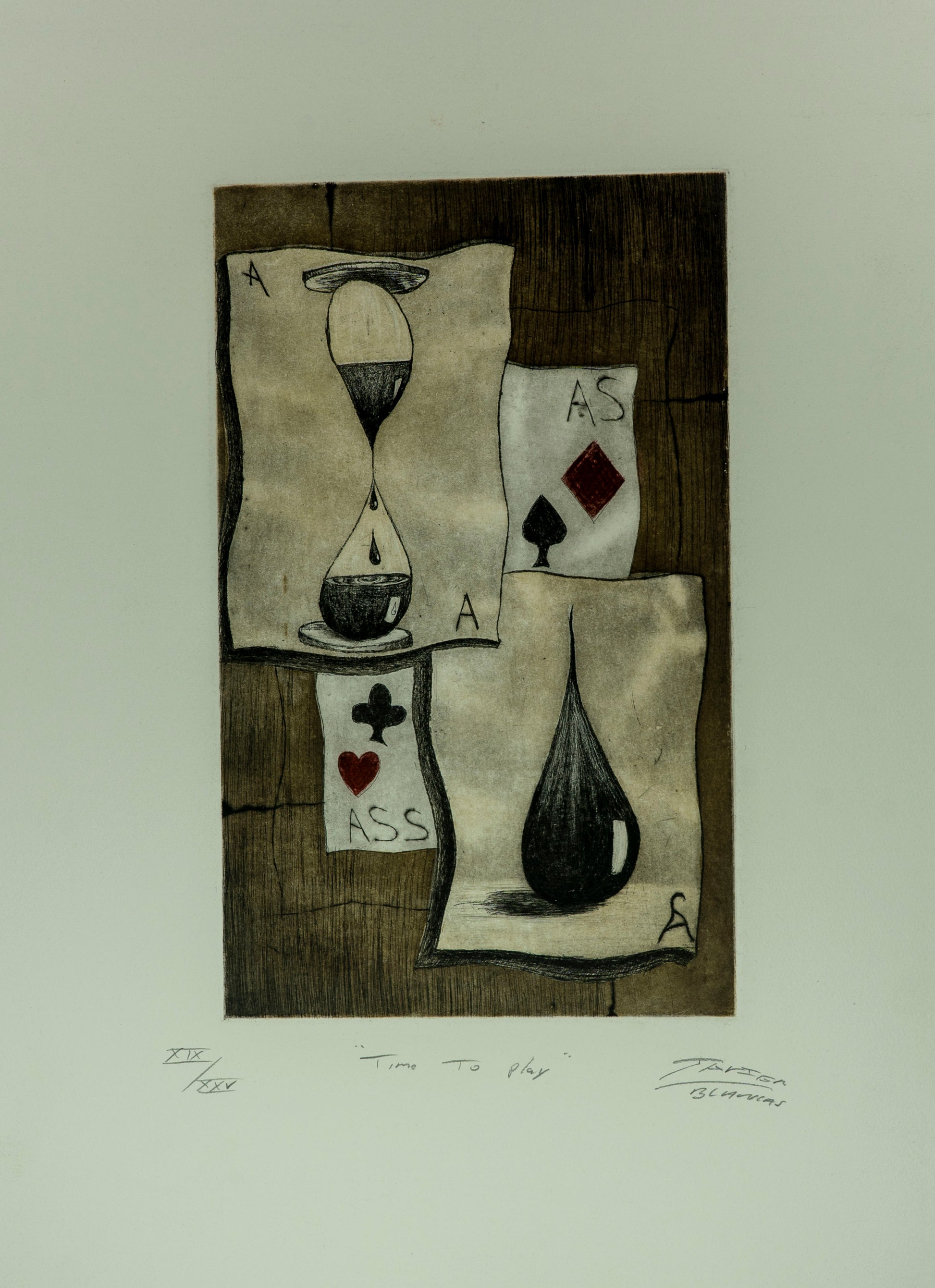 Esta obra única de Javier Blancas titulada "Time to play" ha sido creada utilizando la técnica de Grabado. Sus dimensiones son 32x20 cm.