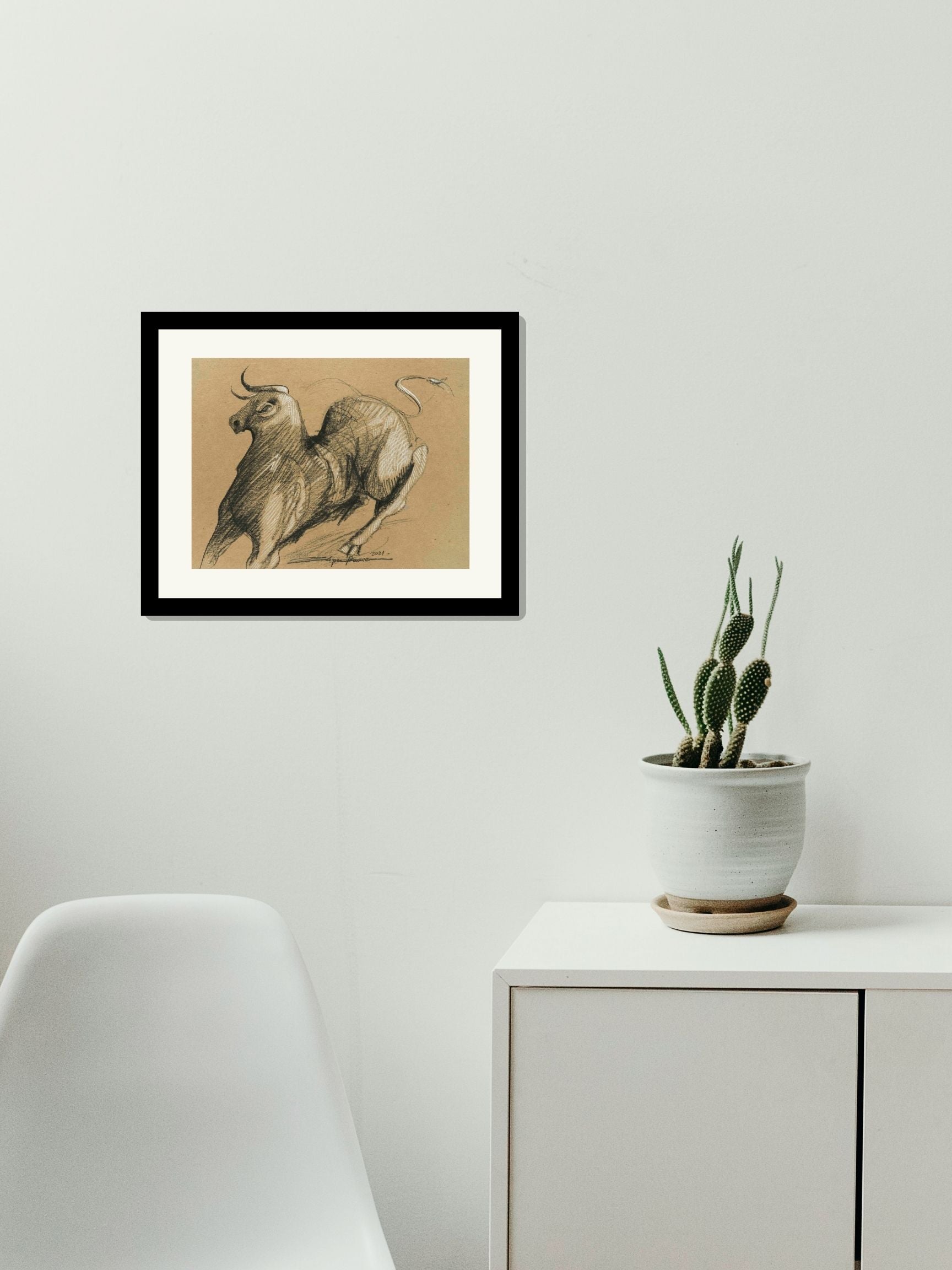 Esta obra única de Roberto Lopez Ramirez titulada "Toro" ha sido creada utilizando la técnica de Carboncillo. Sus dimensiones son 25x28 cm.