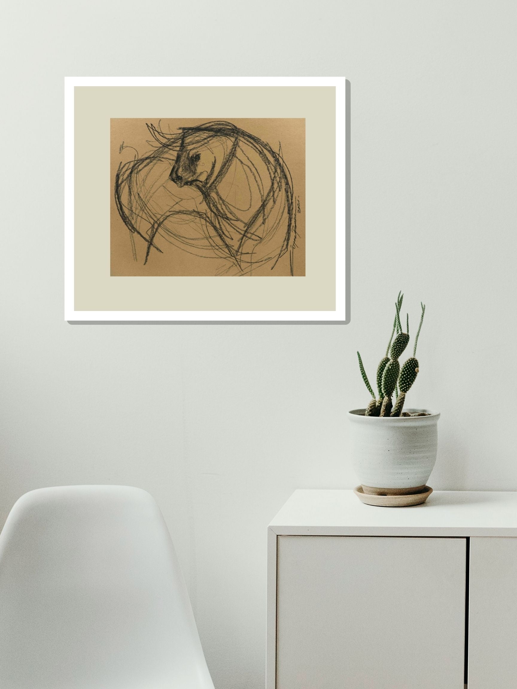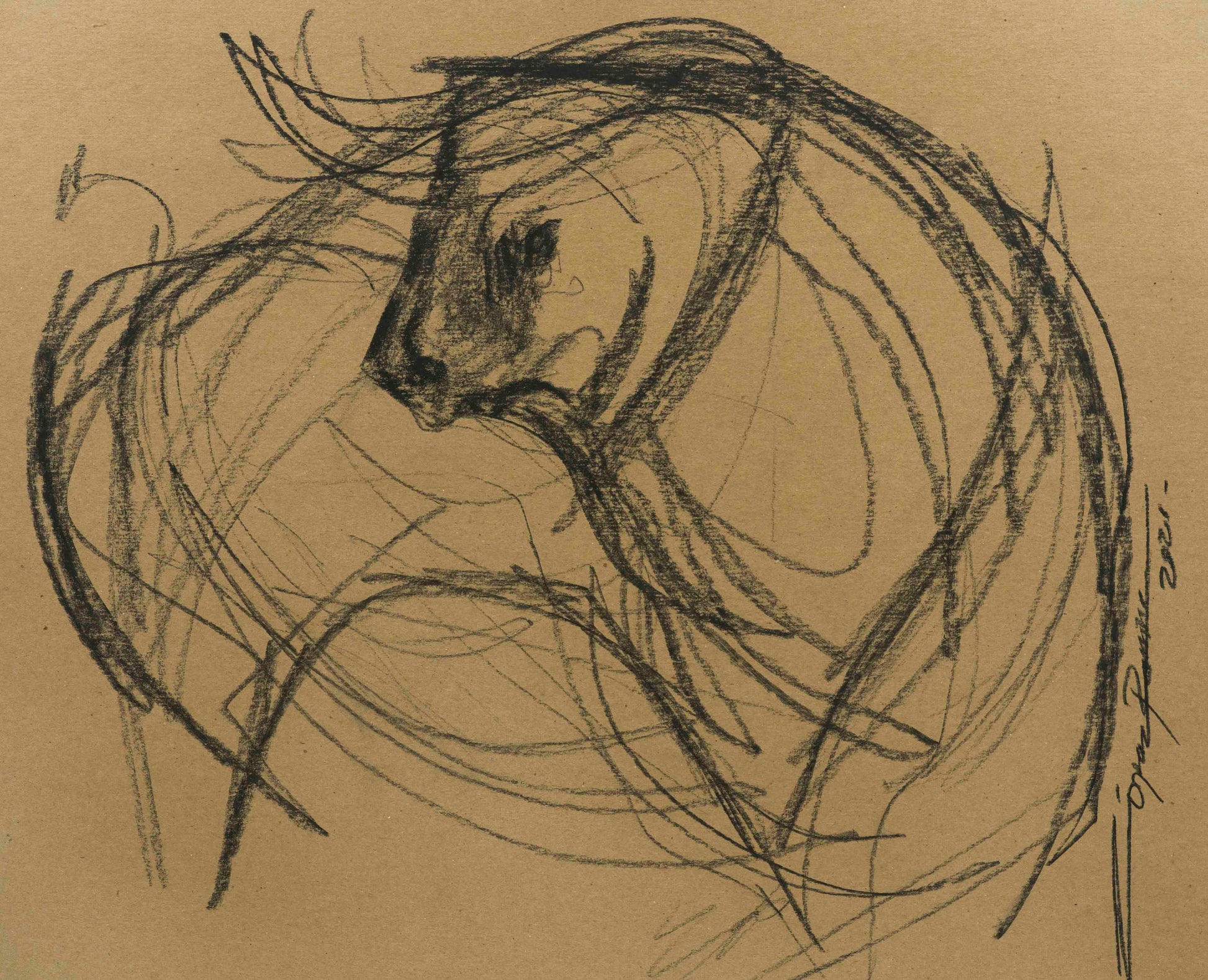 Esta obra única de Roberto Lopez Ramirez titulada "Toro II" ha sido creada utilizando la técnica de Carboncillo y lápiz blanco sobre papel. Sus dimensiones son 32.5x40 cm.
